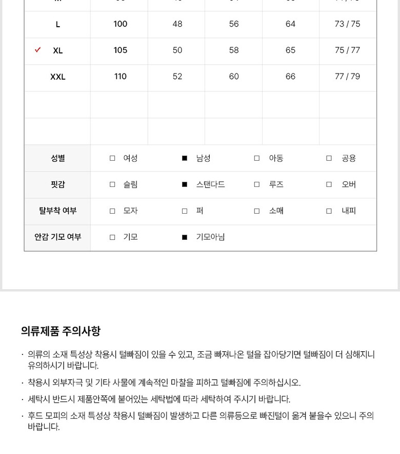 | 3. 치수 | XXS,XS,S,M,L,XL,XXL,XXXL |