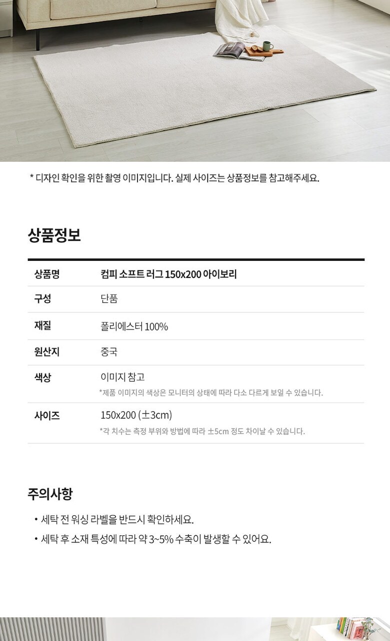 모던하우스 컴피 소프트 러그 150x200 아이보리 CB3225003