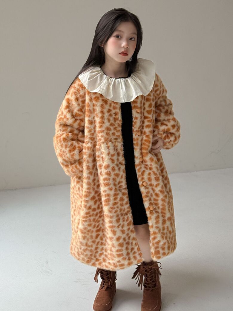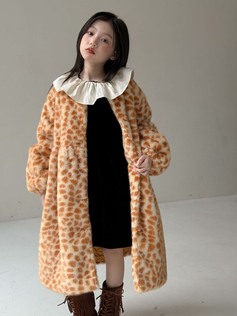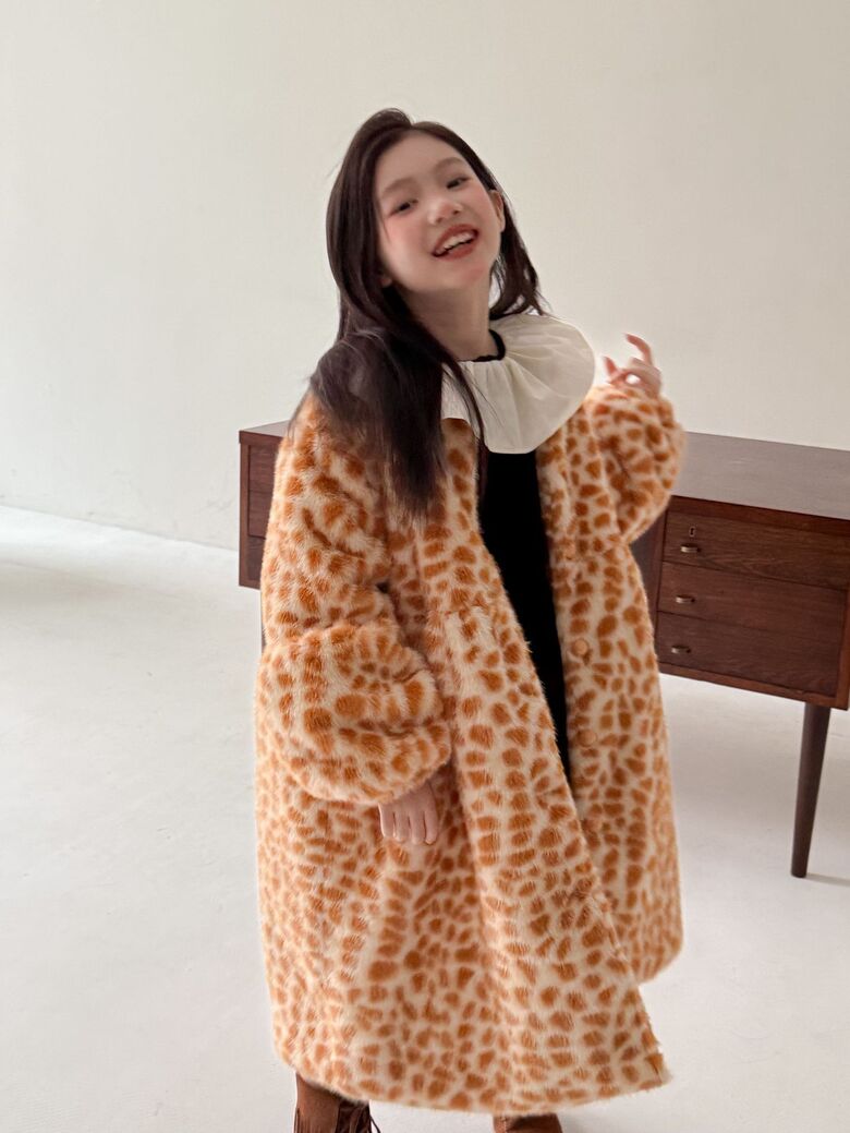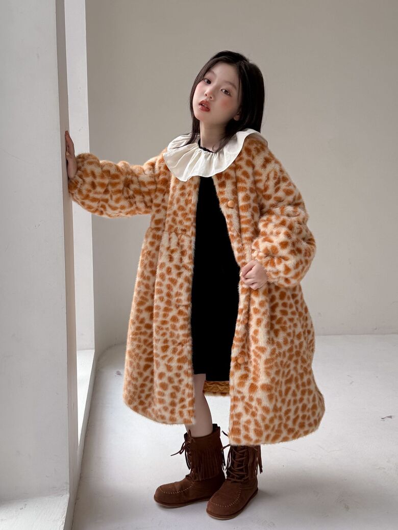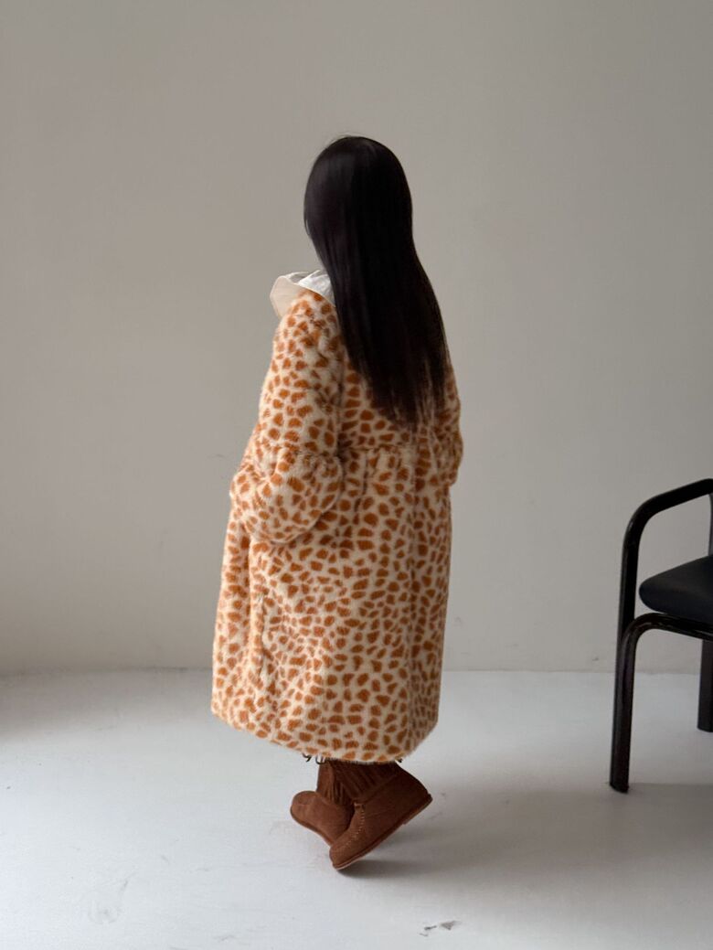 [예약발송] 레오파드 퍼 셔링 롱 코트 R15665