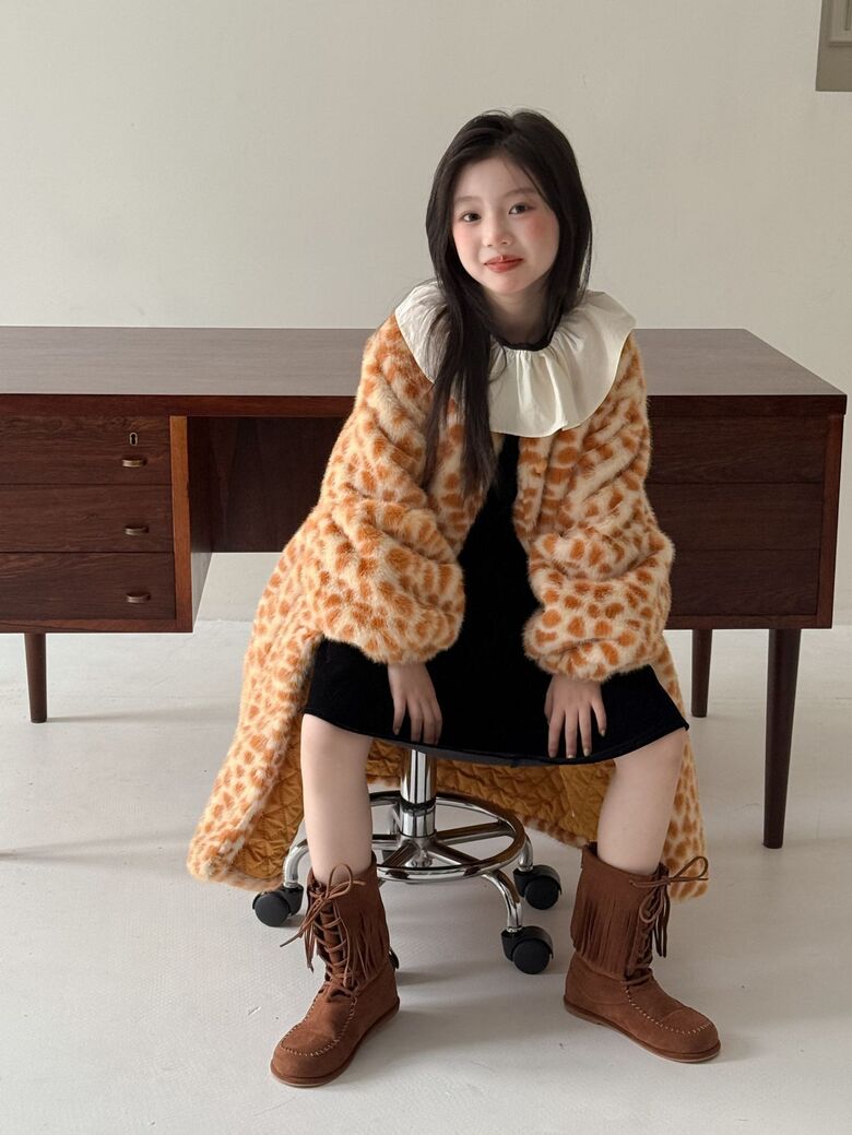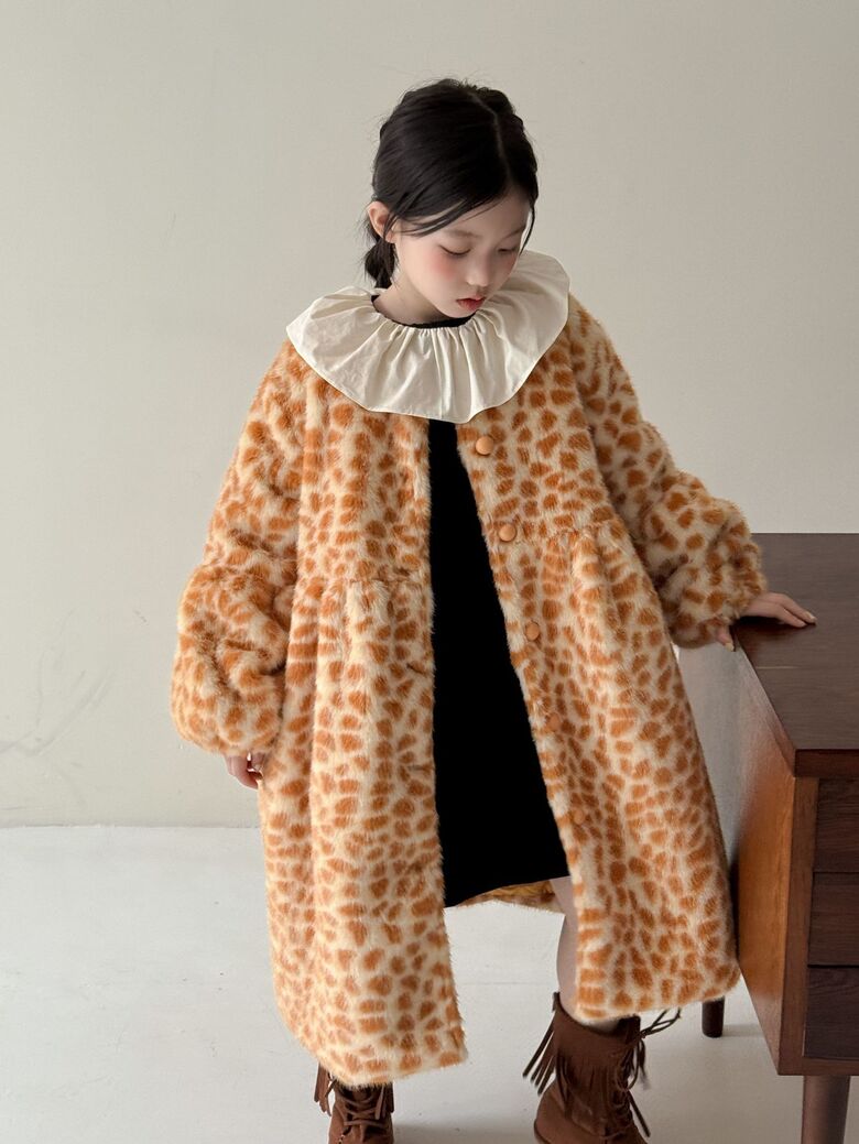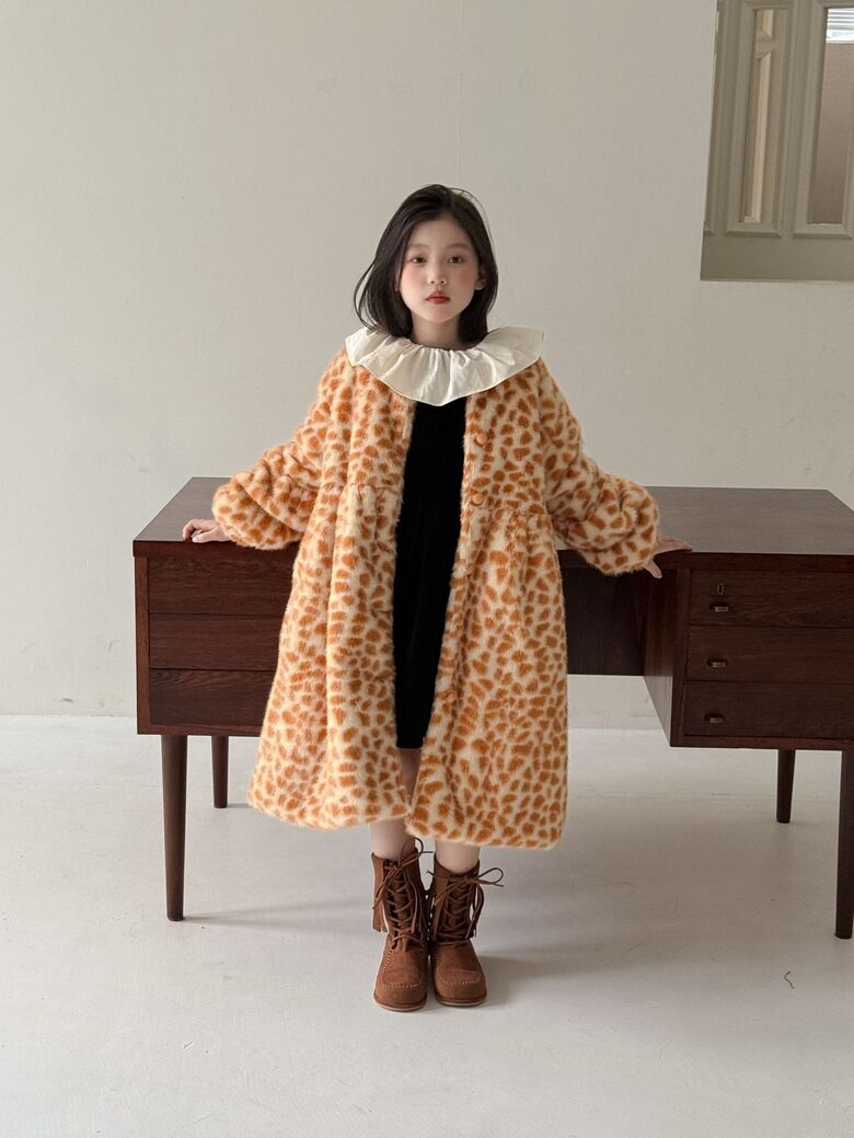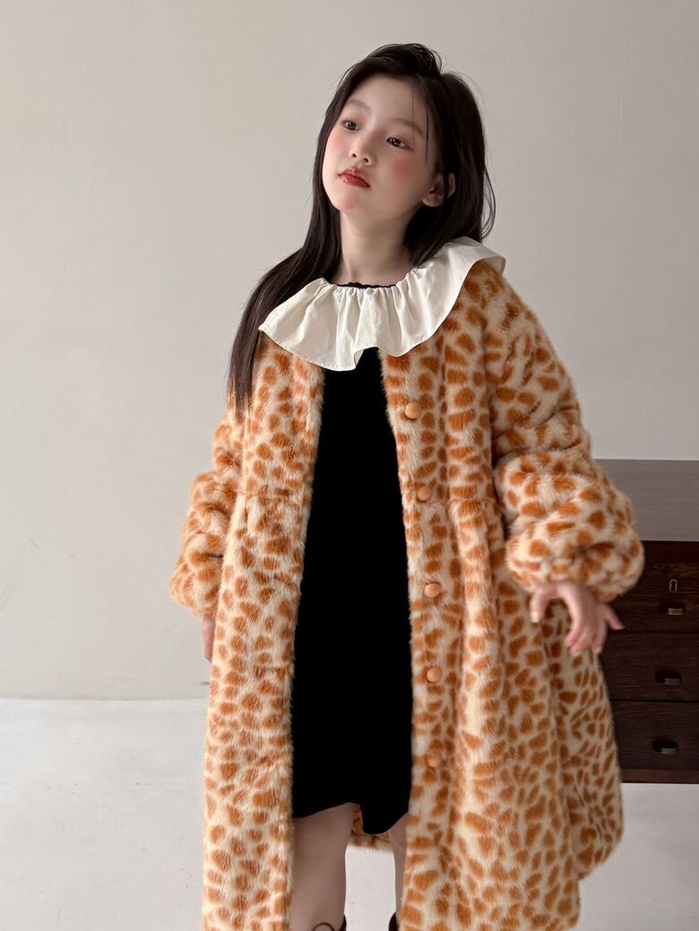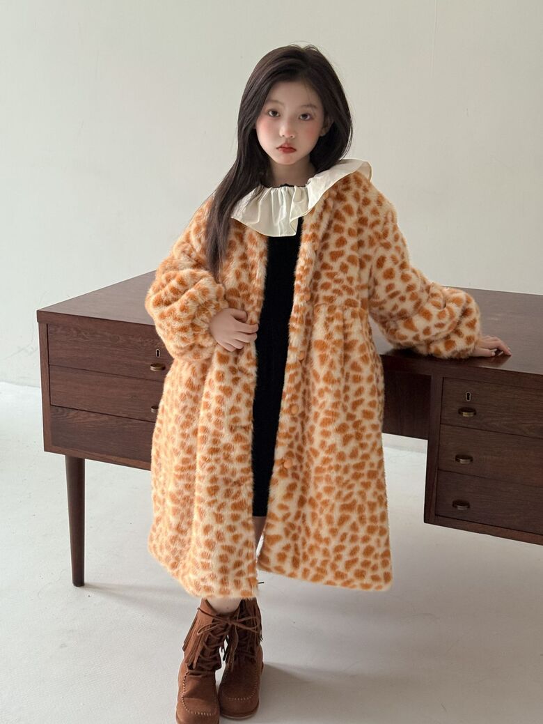 [예약발송] 레오파드 퍼 셔링 롱 코트 R15665