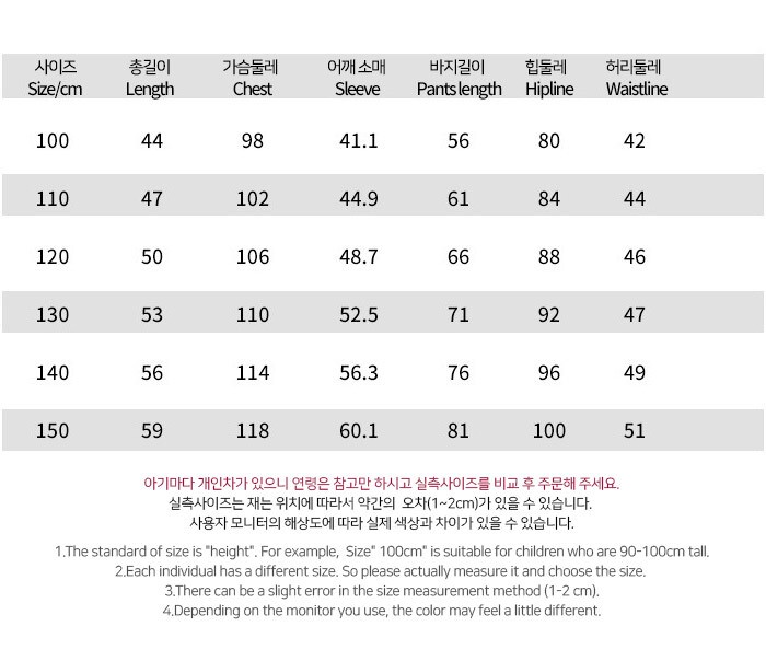 사이즈 : 100,110,120,130,140,150