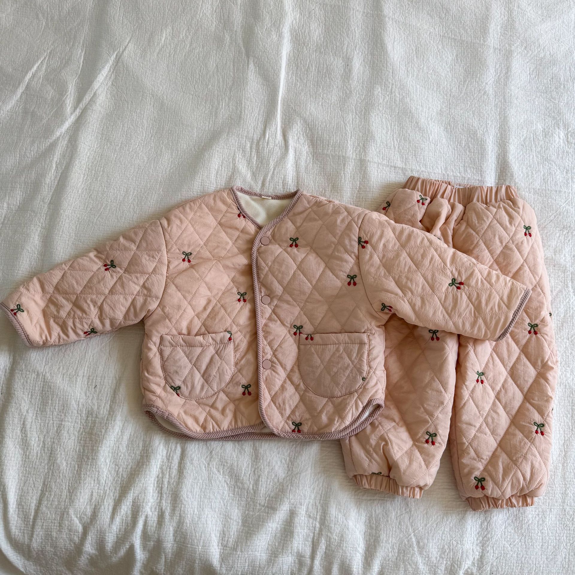 [예약발송] 베어 자수 퀼팅 상하복 세트 R15650