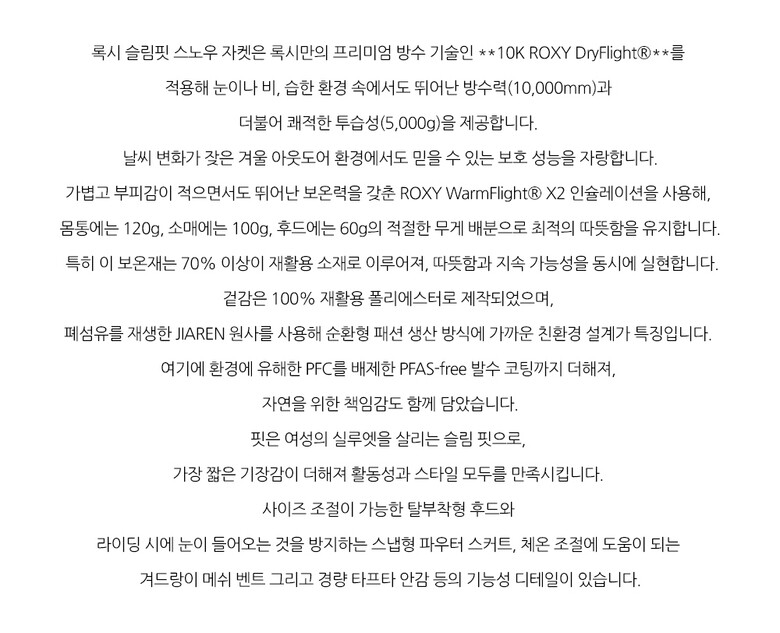 [록시] FREE JET BLOCK 스노우 점퍼 (RF51SJ029-PJQ)