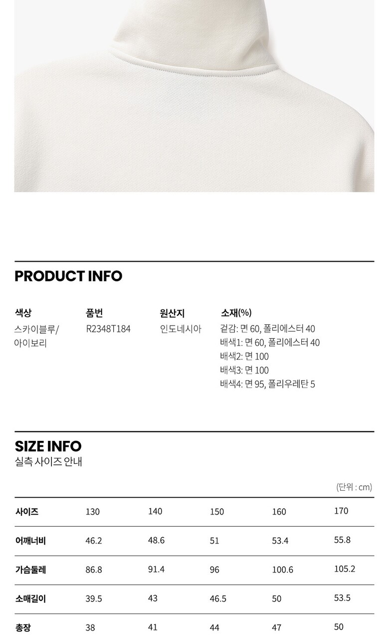 • 처음 배송된 상품상태와 다를 경우(세탁/착용 후 외출하신 경우) 반품이 불가합니다.