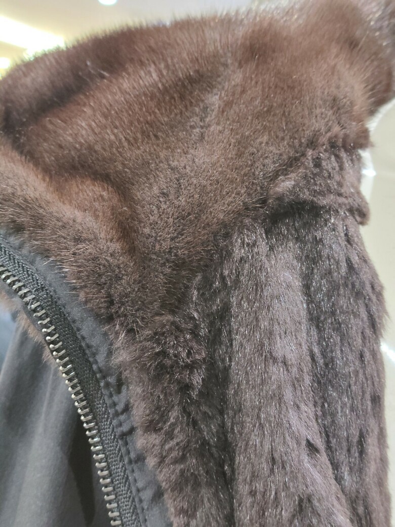 겉감:폴리에스테르 74%, 나일론 20%, 폴리우레탄 6% / 배색:밍크 100% / 안감: 토끼털 100%