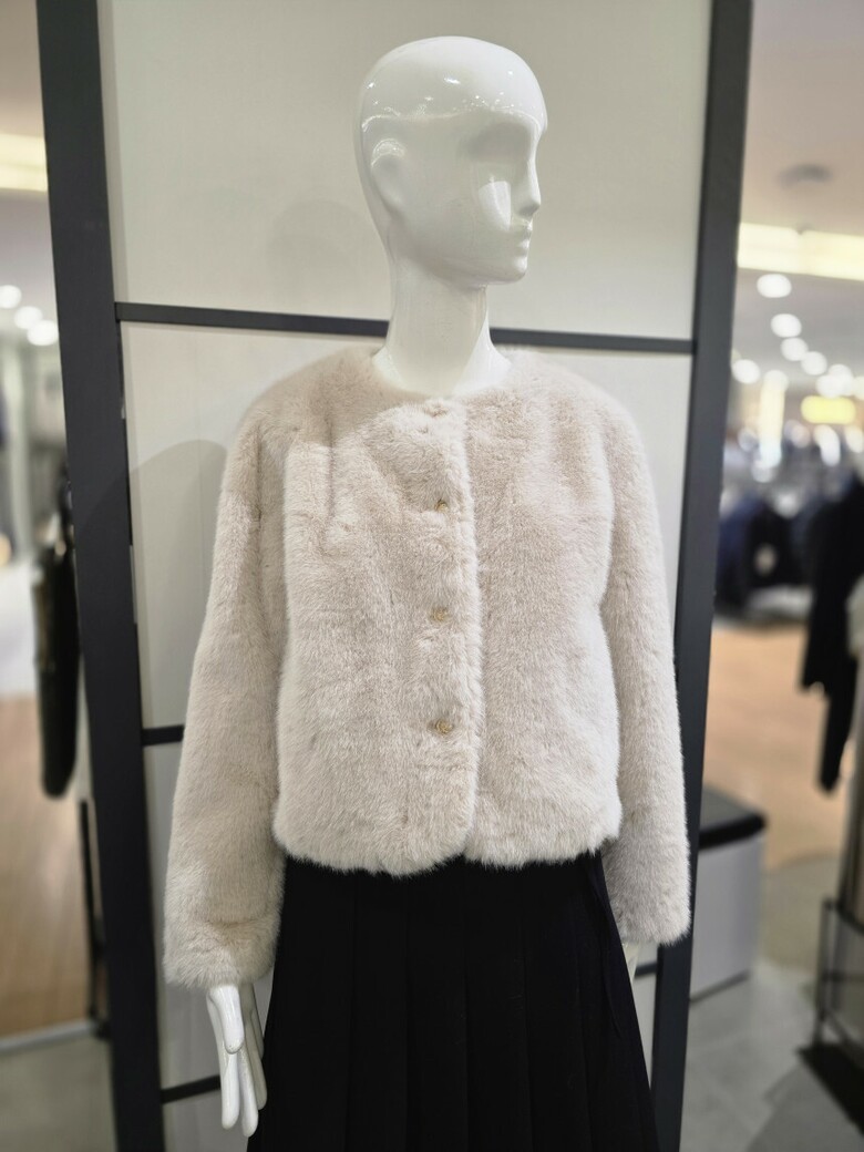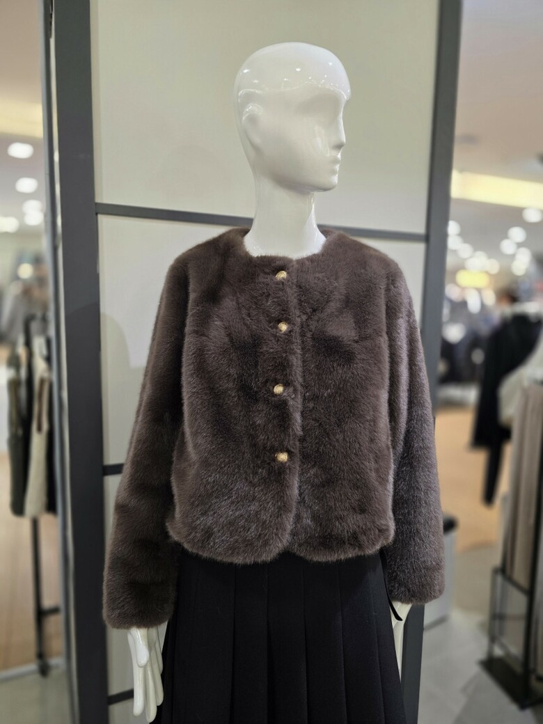 [ab.f.z] 라운드넥 금장단추 퍼자켓 MAZ4QF01