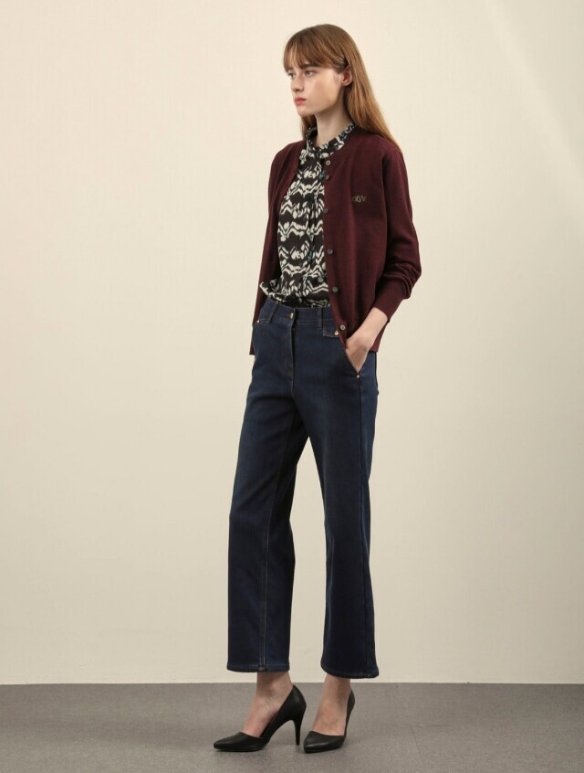 [올리비아로렌]이중넥 배색 가디건VOBBC4W9131