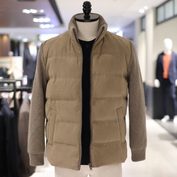 트레몰로 특가상품 남성 스웨이드 니트소매 덕다운 패딩점퍼입니다.