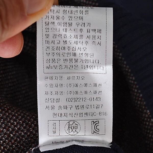 세탁방법 및 취급시 주의사항 : 드라이크리닝