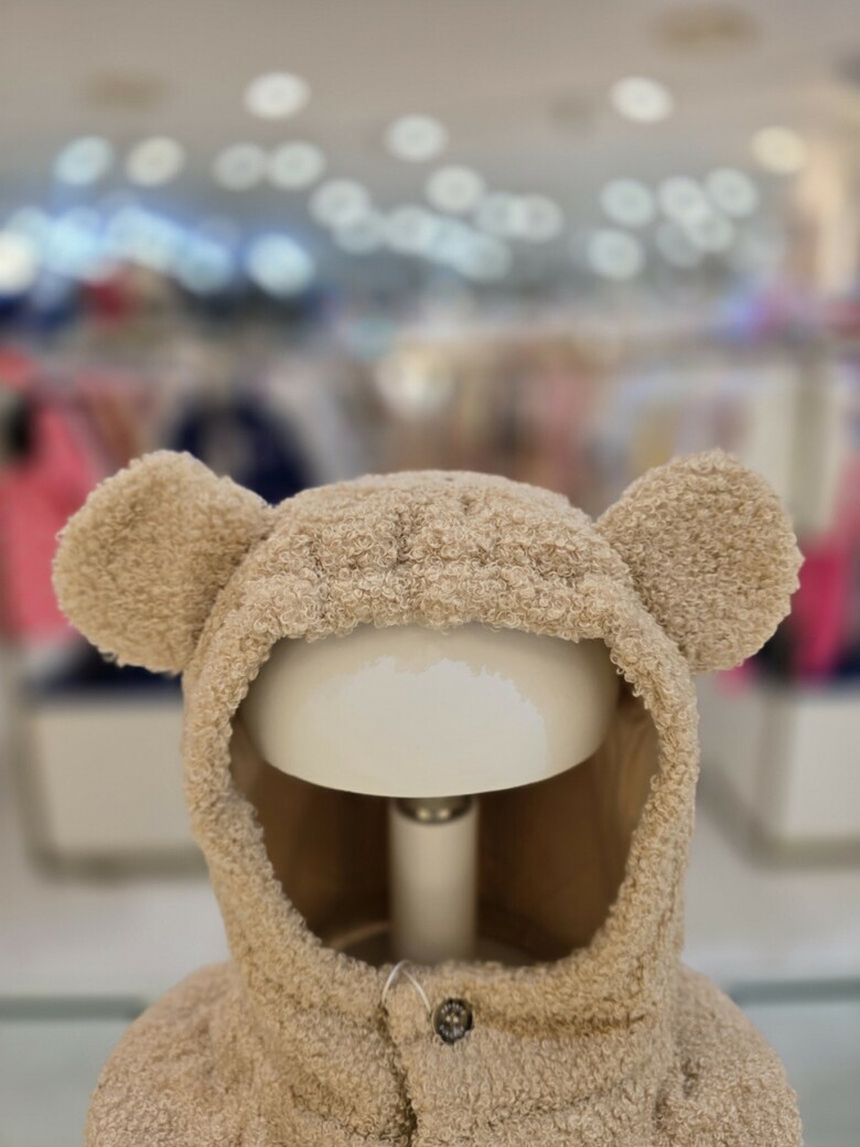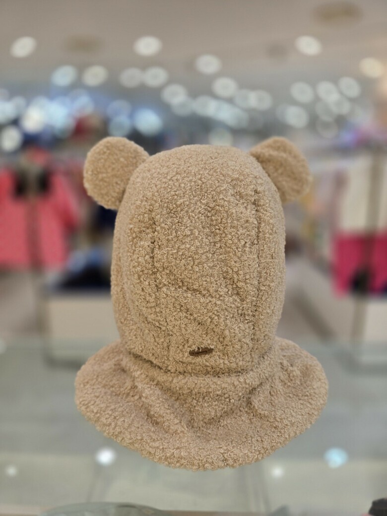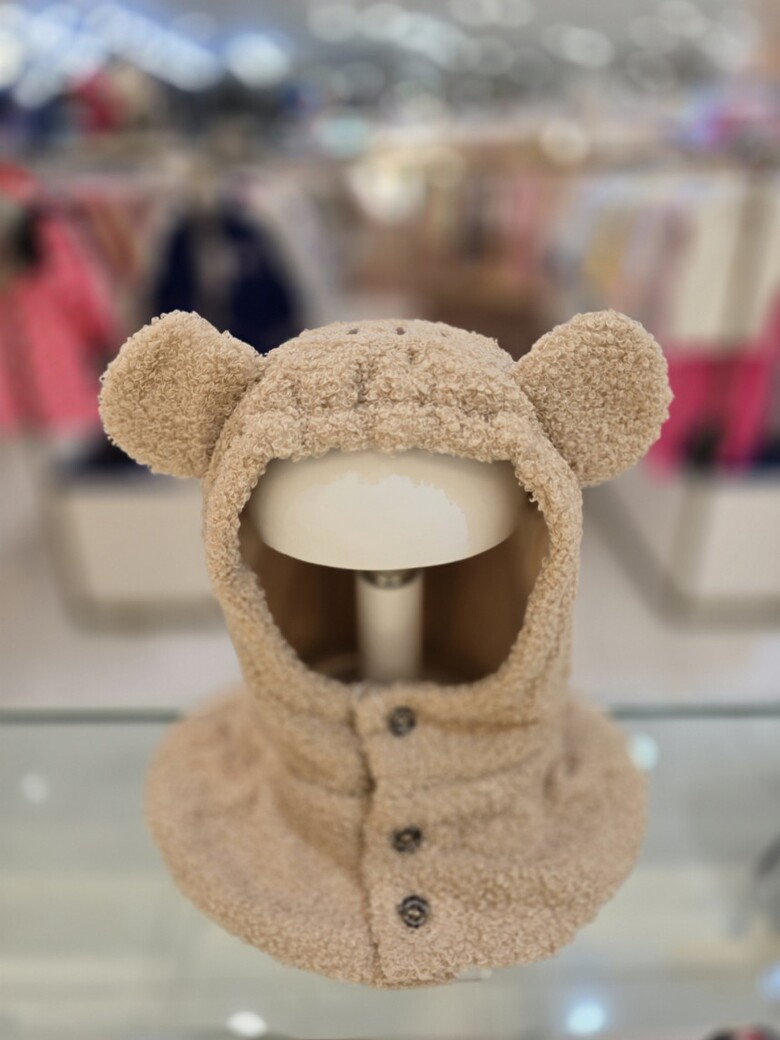 목까지 내려오는 귀여운 목도리와 모자랑 섞인 느낌의 모자예요~