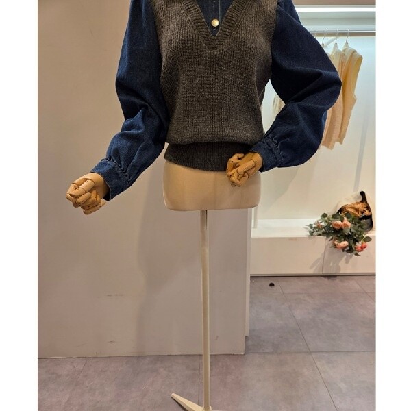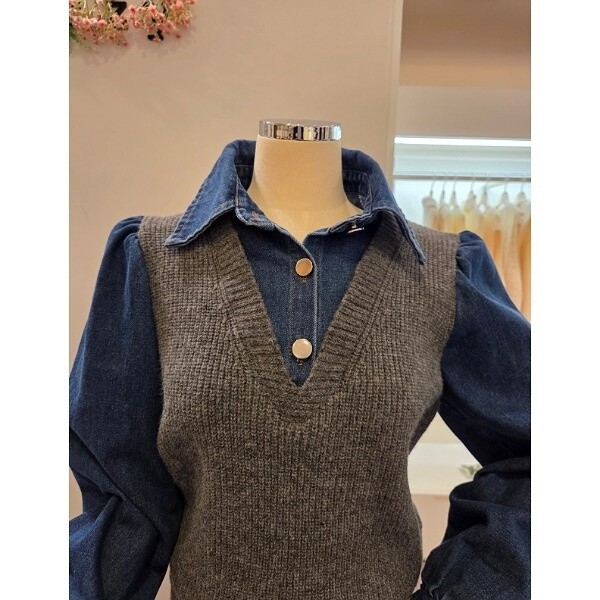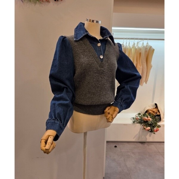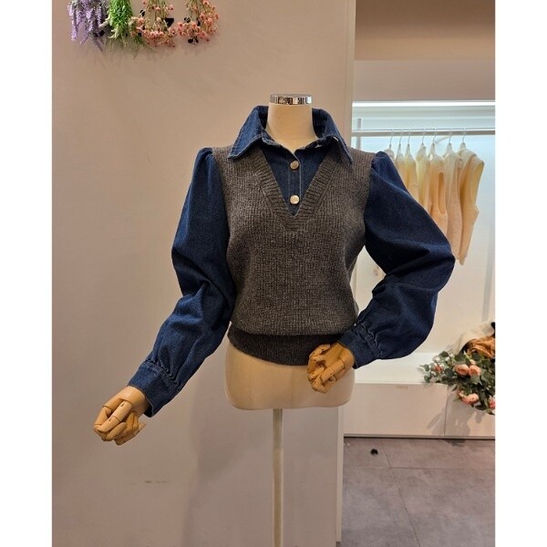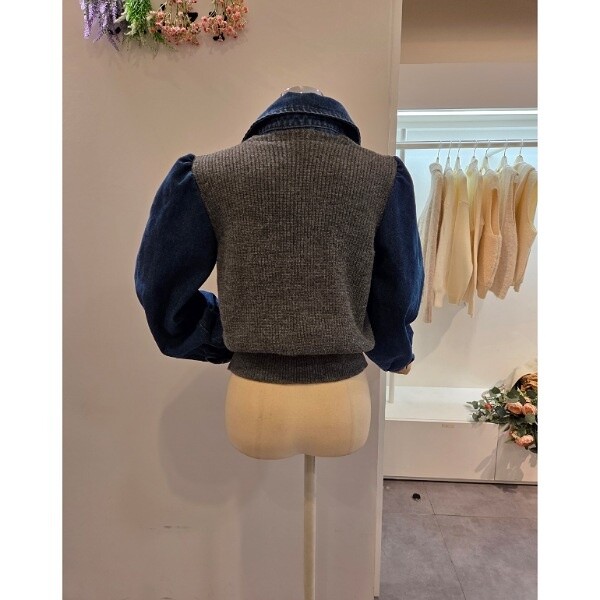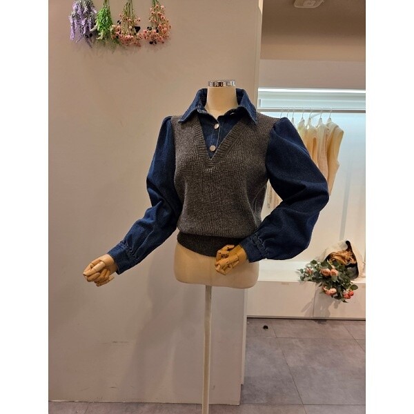 CP8WKT42_데님 소매 카라 니트