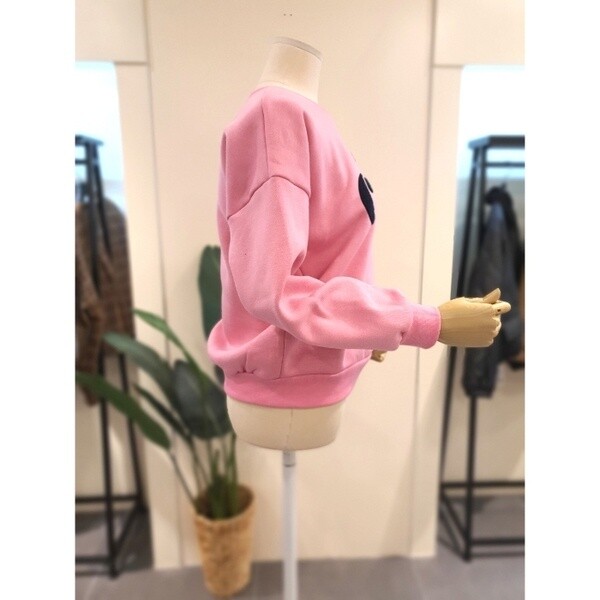 귀여운 뽀글 패치로 포인트를 준 기모 맨투맨입니다.