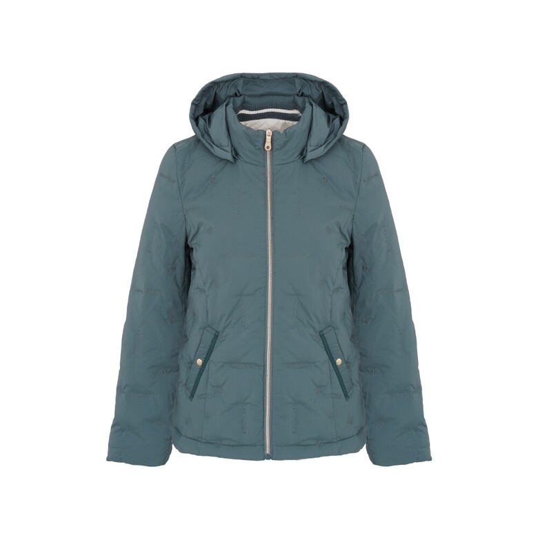 (G라인)|*|(와일드로즈) 앞판의 고급스러운 로고 자수가 포인트인 숏기장의 덕다운 점퍼. 후드 탈부착이 가능하며|*| 니트소매로 보온력을 높은 다운 아이템.