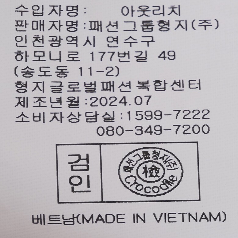 | 6. 세탁방법 및 취급시 주의사항 | 상품상세참조 |