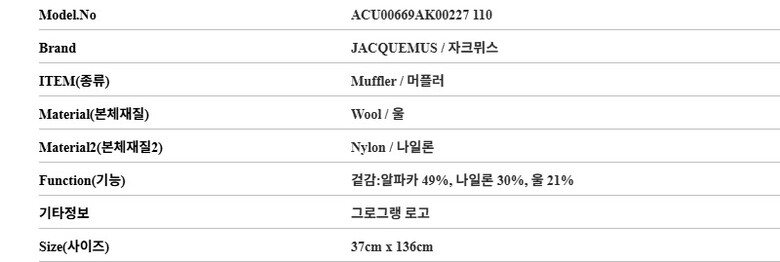 자크뮈스 ACU00669AK00227 110 르 샤르 그로스 스레인 그로그랭 로고 머플러