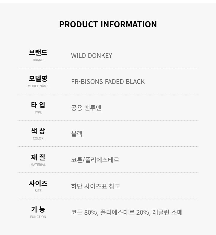와일드동키 FR-BISONS FADED BLACK 공용 맨투맨