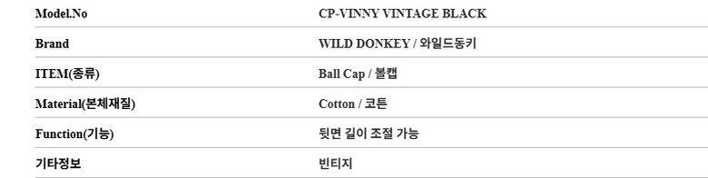 와일드동키 CP-VINNY VINTAGE BLACK 빈티지 볼캡