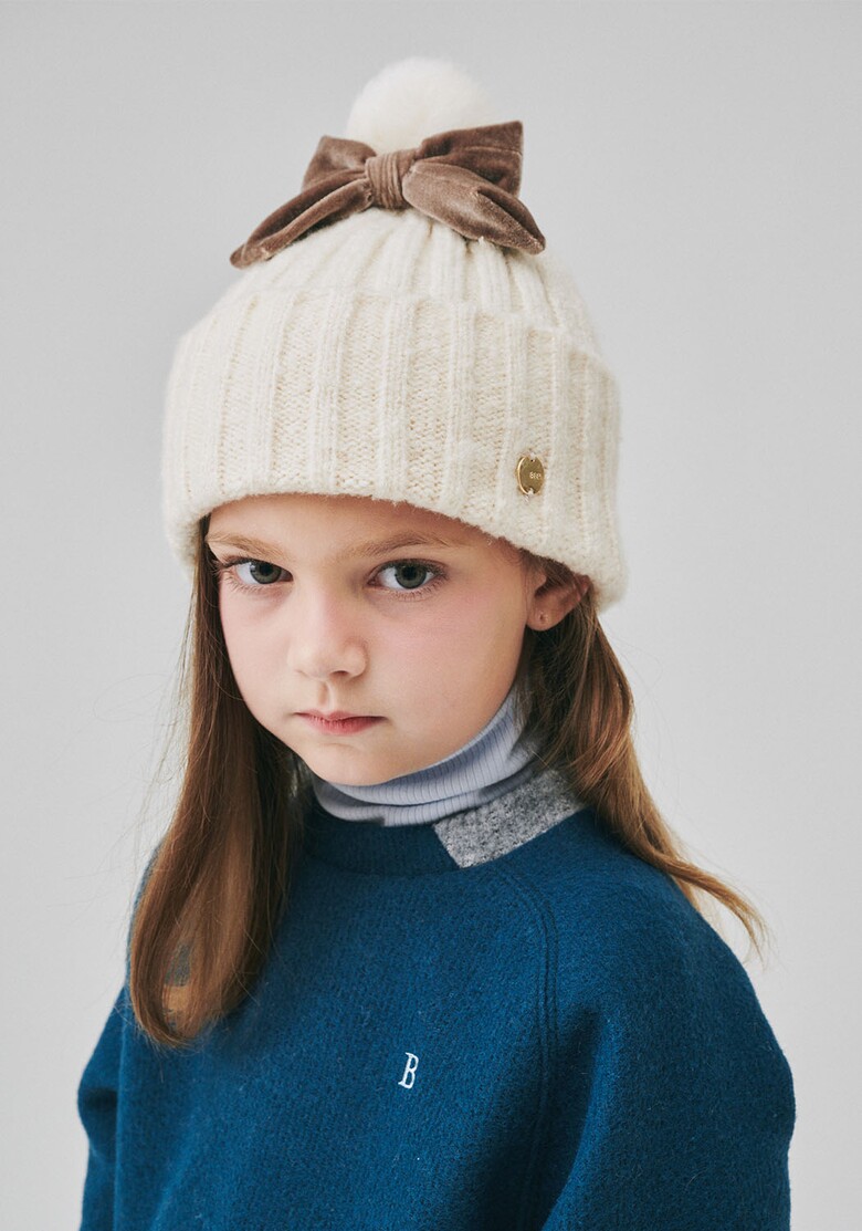 BZ64AH02IV_아이보리 리본 방울 비니