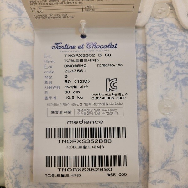 | 1. 품명 및 모델명 | 백일돌선물)트왈드내의B |