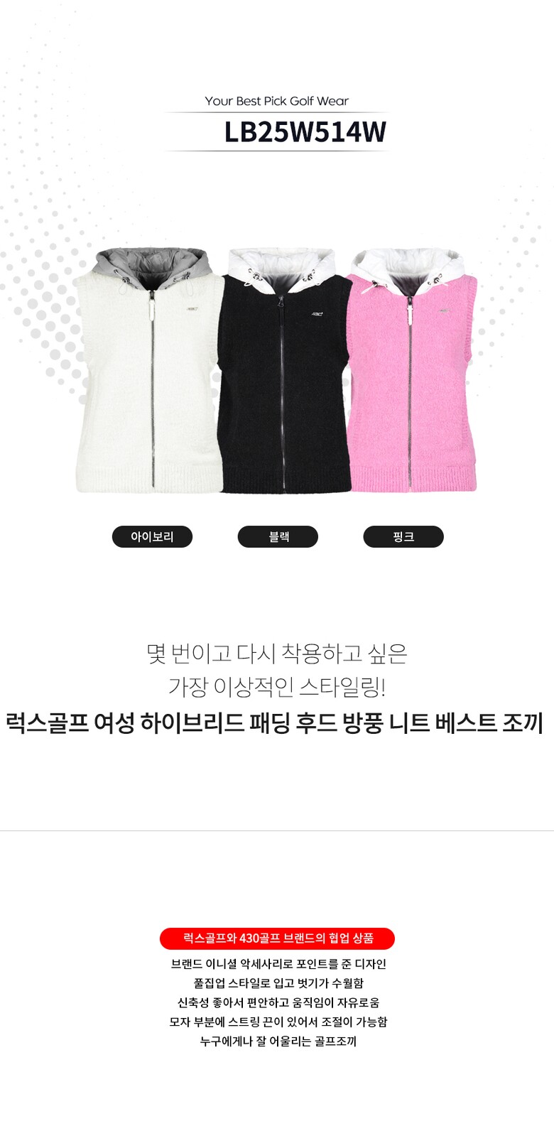골피아 LB25W514W 여성 하이브리드 패딩 후드 방풍 니트 베스트 조끼