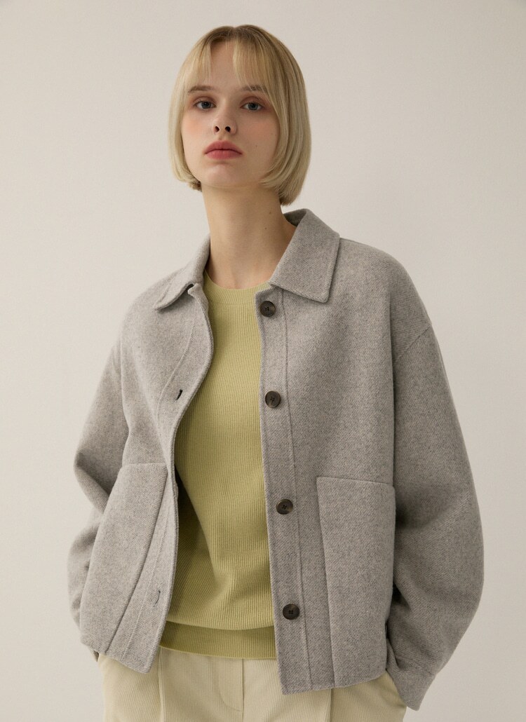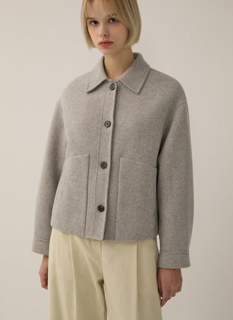 카라와 아웃 포켓 디자인으로 디테일을 넣은 핸드메이드 자켓입니다.