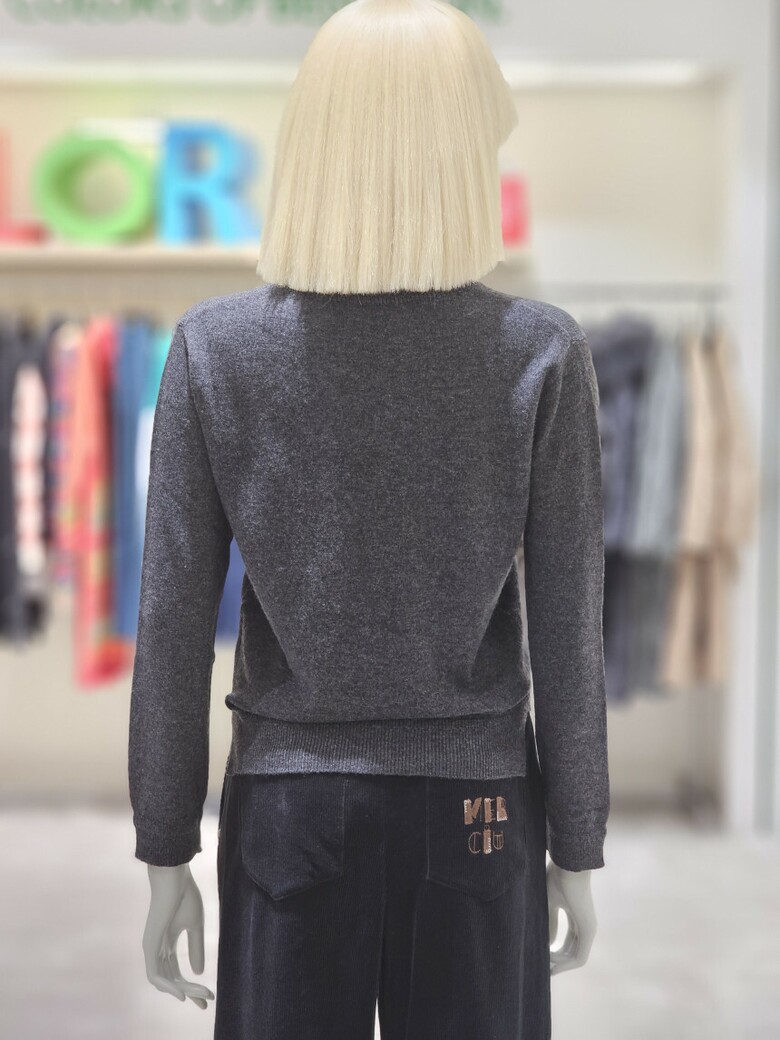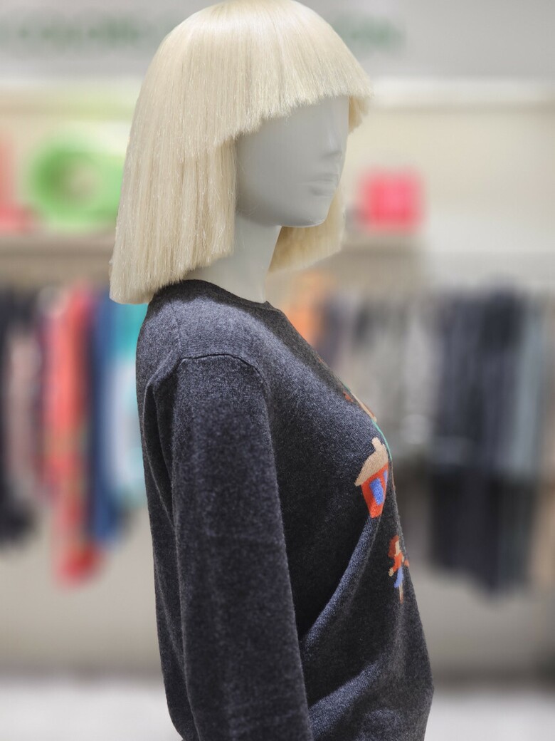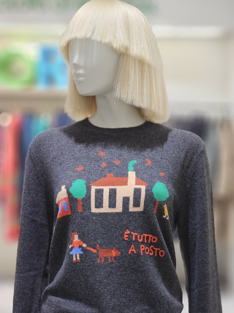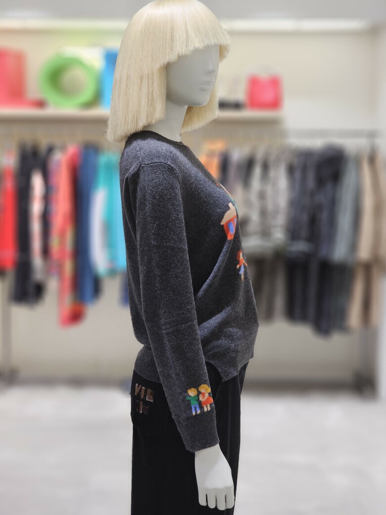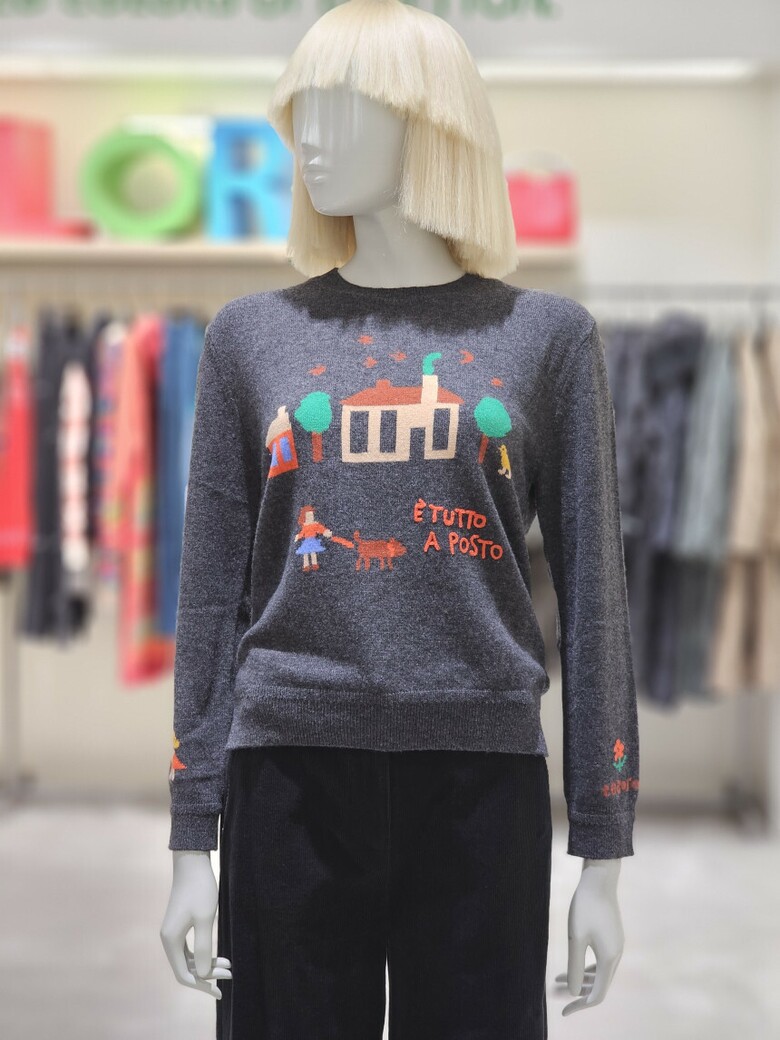 유니크한 무드의 인타샤 디테일로 포인트를 준 니트.