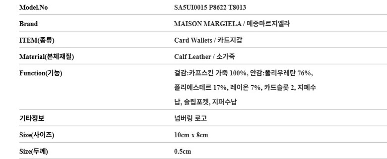 마르지엘라 지갑 SA5UI0015 P8622 T8013 MM6 넘버링 로고 카드지갑 당일발송
