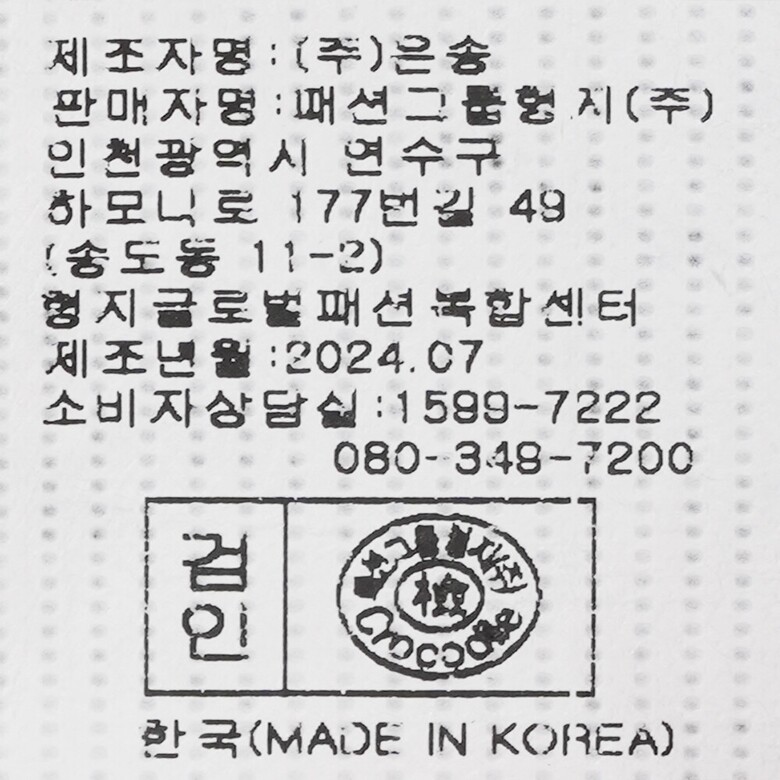 | 1. 제품 소재 (섬유의 조성 또는 혼용률을 백분율로 표시, 기능성인 경우 성적서 또는 허가서) | 상품상세참조 |