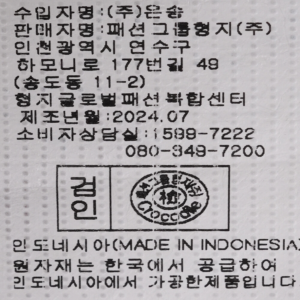 | 1. 제품 소재 (섬유의 조성 또는 혼용률을 백분율로 표시, 기능성인 경우 성적서 또는 허가서) | 상품상세참조 |