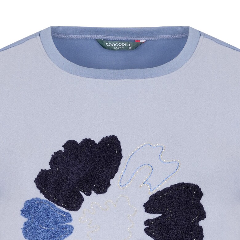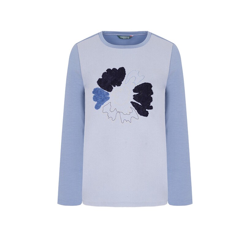 은은한 부클 느낌의 밀링지 배색으로 고급스러우며 플라워 아트웍인 포인트인 라운드 티셔츠입니다