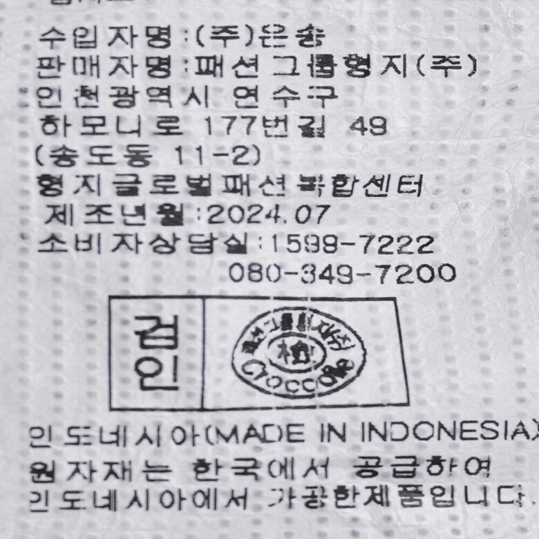 1. 제품 소재 (섬유의 조성 또는 혼용률을 백분율로 표시, 기능성인 경우 성적서 또는 허가서) 상품상세참조