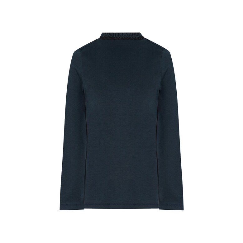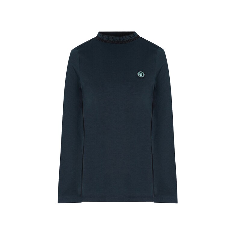 G라인)폴리MVS스판 속기모로 부드럽고 보온성이 뛰어나며 전판 솔리드에 에리의 레터링 자가드가 포인트인 반넥 티셔츠