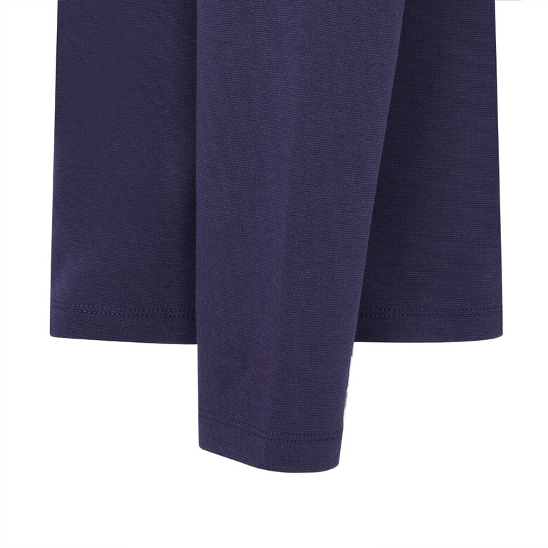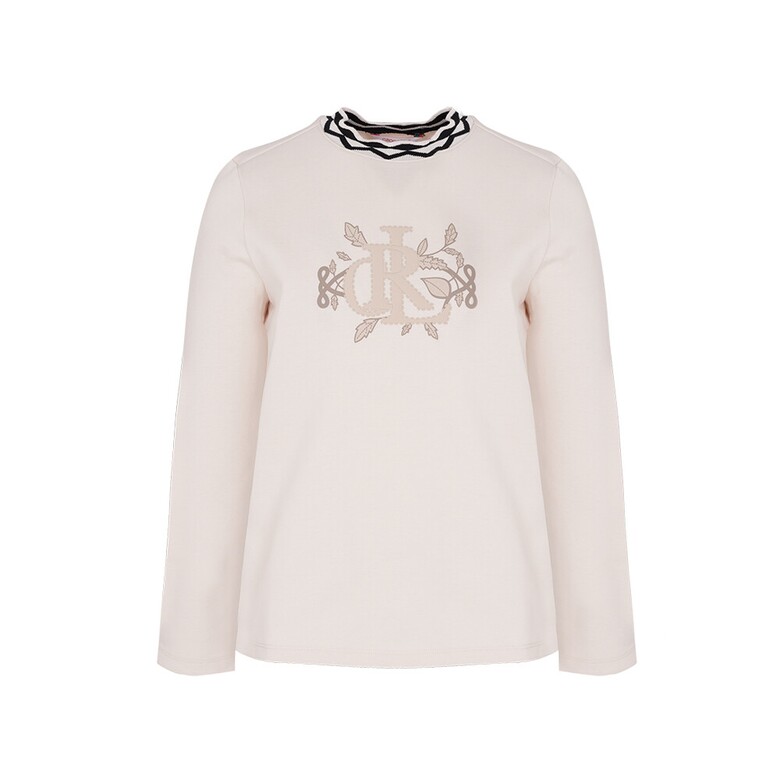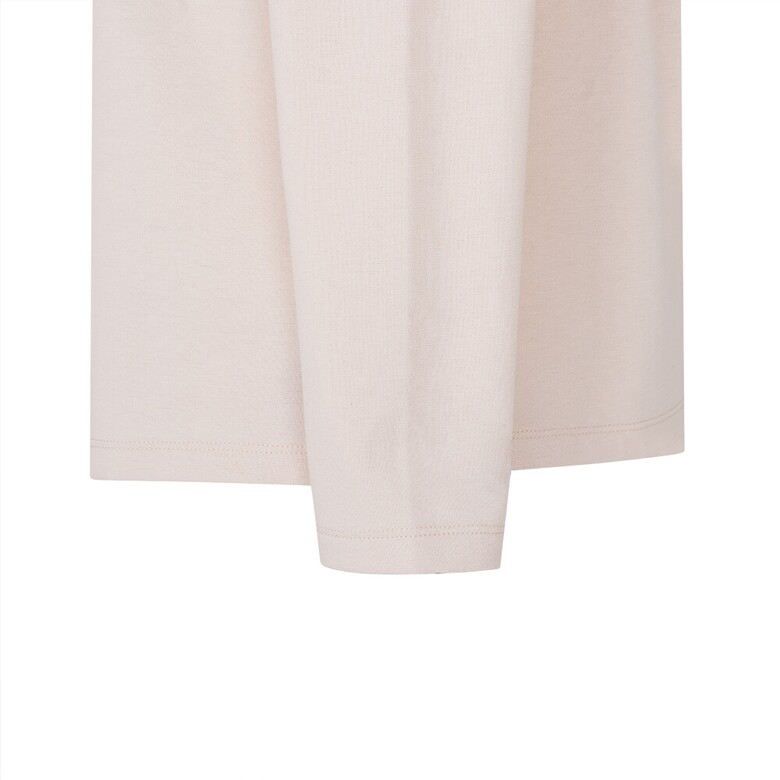 CVC분또를 사용하였고 앞판 프린트와 에리의 스캘럽 자가드 요꼬가 고급스러운 솔리드 원포인트 티셔츠