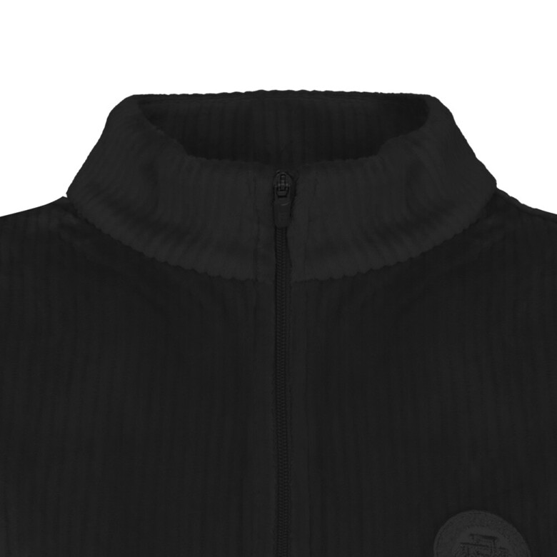벨로아 골지소재를 사용하여 부드럽고 텐셤감이 좋으며 안쪽 모가 보온성을 높여주고 뽀글이 와펜이 포인트인 스포티하고 세련된 반넥 풀오픈 베스트