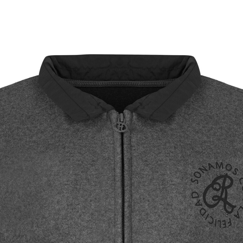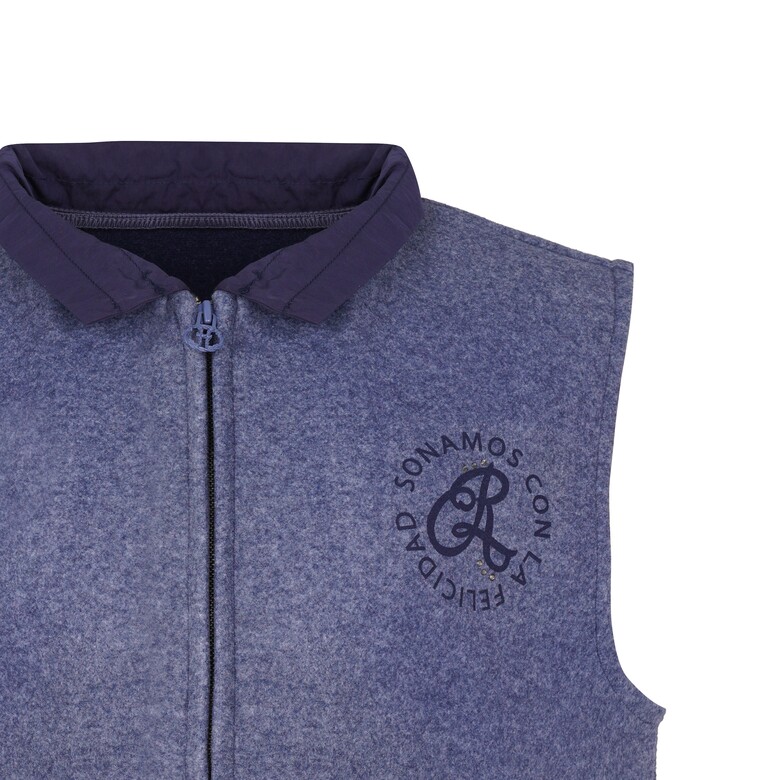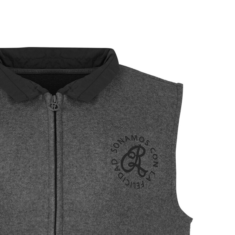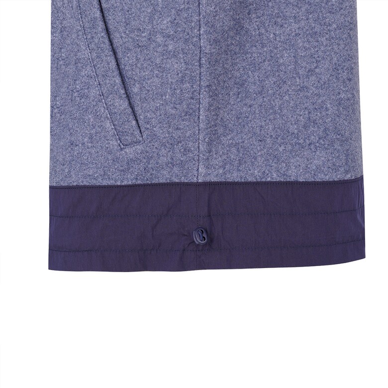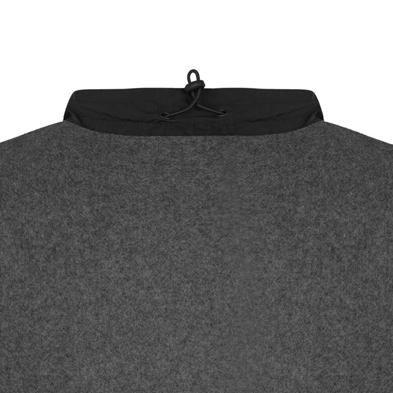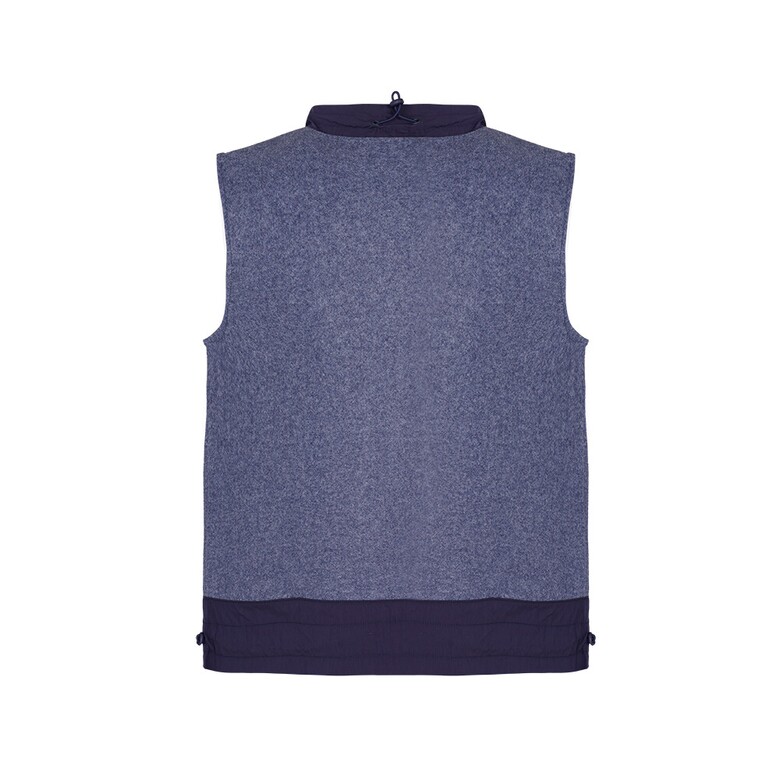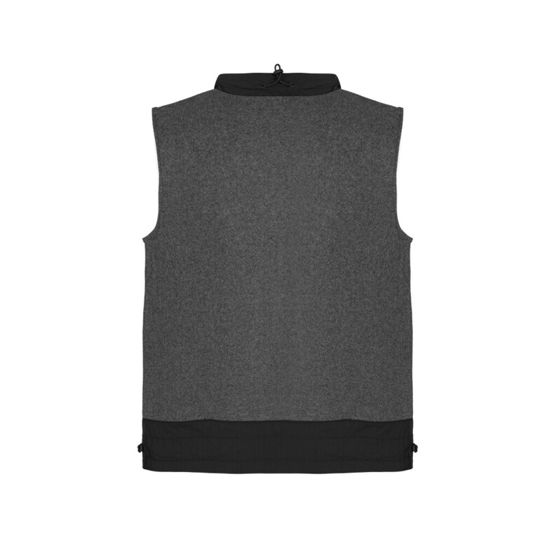 넥과 밑단에 우븐 배색이 들어간 밀링지 베스트입니다. 넥과 밑단에 스트링을 조여 자유롭게 핏을 연출할 수 있습니다. 상동의 프린트로 포인트를 주었으며|*| 차콜/블루컬러의 차분한 톤다운된 컬러로 코디하기 용이한 아이템입니다.