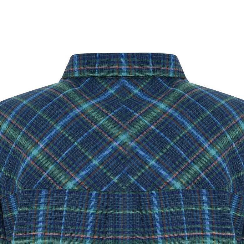따뜻한 느낌의 코듀로이 배색이 들어간 체크 풀 오픈 셔츠. 포켓 자수포인트로 단독으로도 멋스럽고|*| 레이어드로 코디하기 좋은 셔츠 아이템.