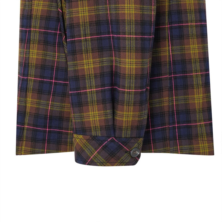 플리스 본딩 소재로 보온성이 뛰어난 아우터형 체크 풀오픈 셔츠. 소매 턴업시 보이는 배색으로 캐주얼함을 더한 아이템.
