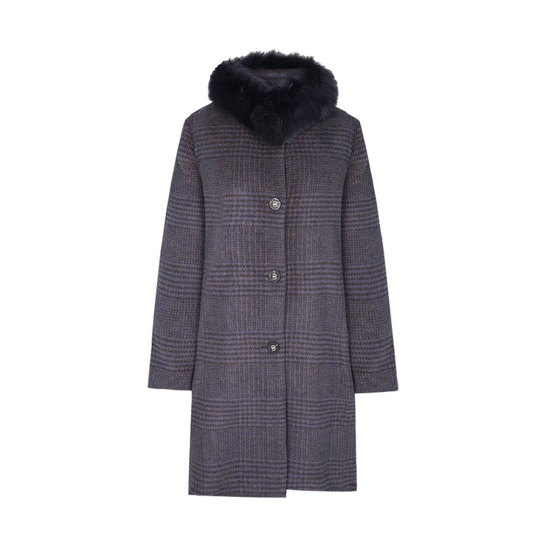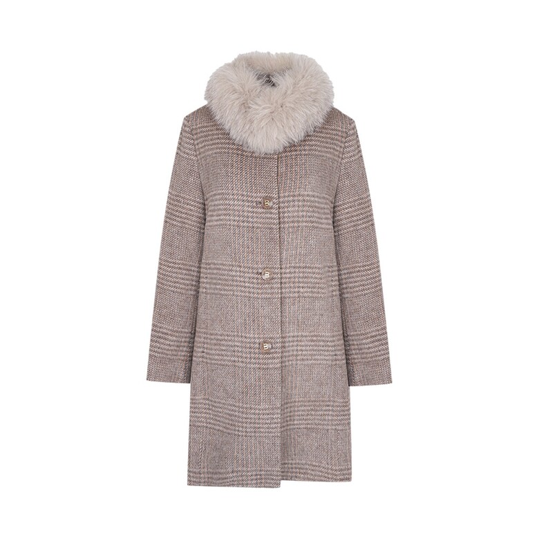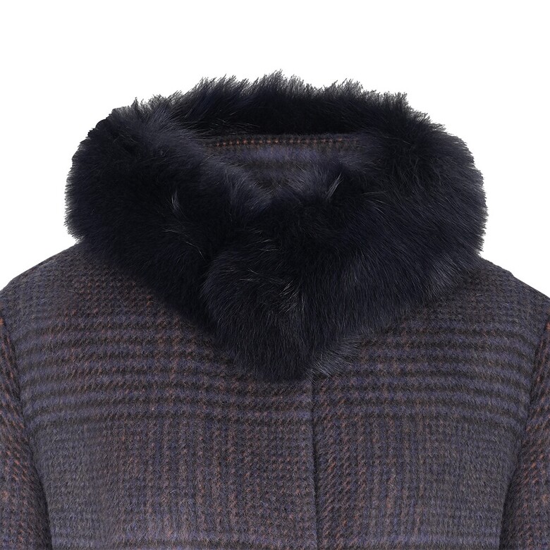알파카 체크 소재에 폭스 카라가 멋스러운 디자인 입니다. 폭스 카라가 탈부착 되면서 슬림한 실루엣에 시크하면서도 여성스러운 디자인의 알파카 코트 입니다.
