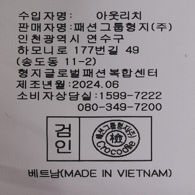 | 6. 세탁방법 및 취급시 주의사항 | 상품상세참조 |