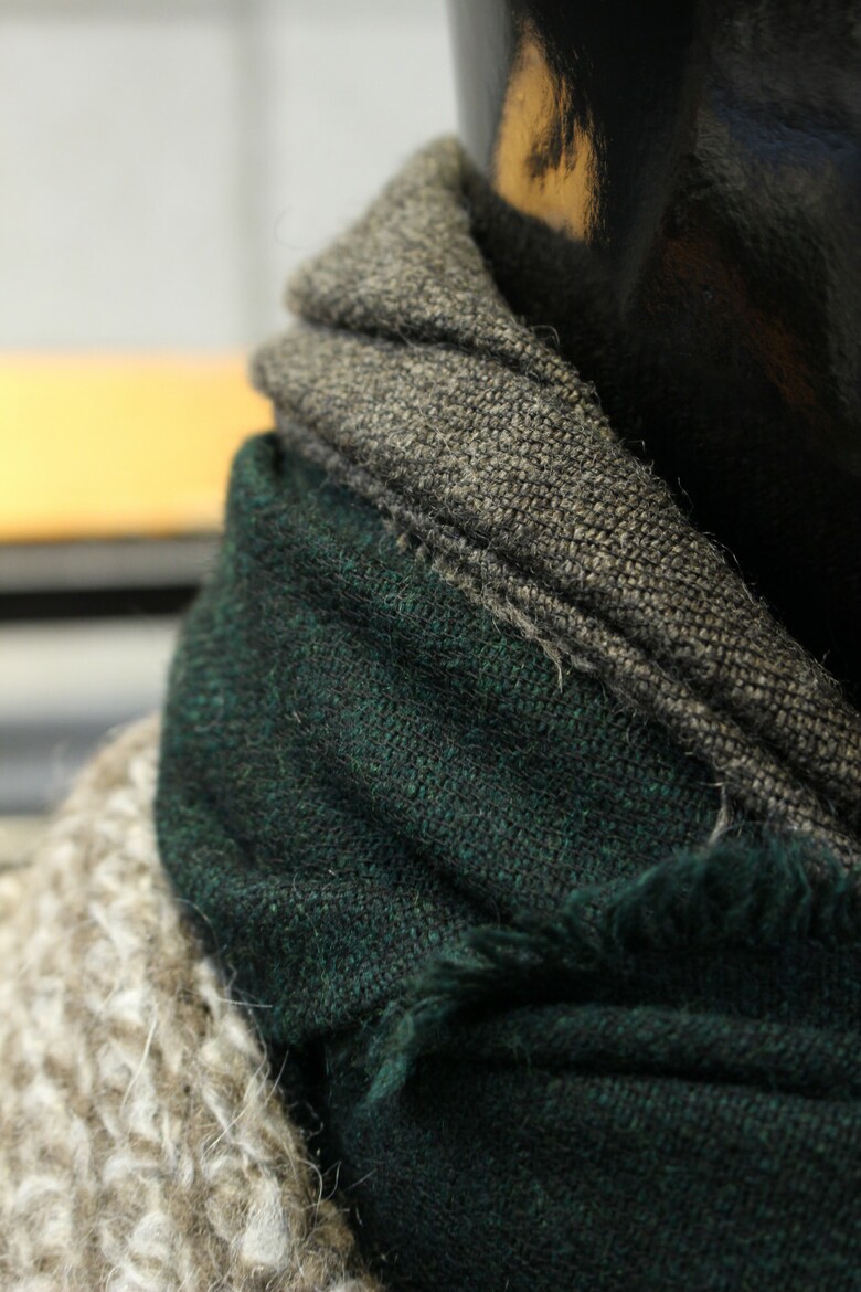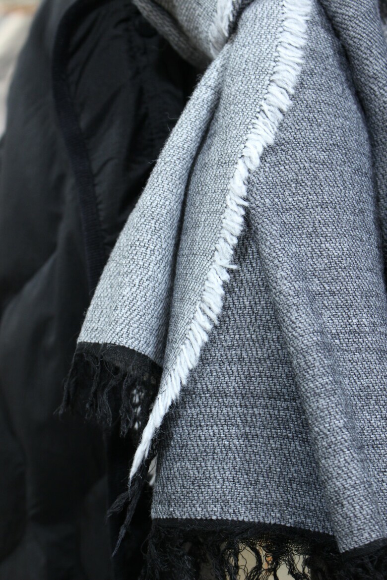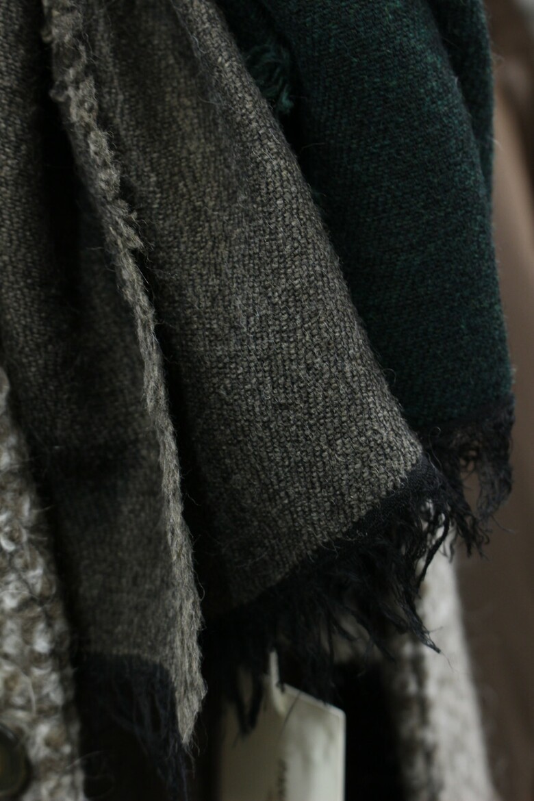 알파카 울모달혼방원단으로 소재감이 부드럽고 끝단프린지마감으로 빈티지한느낌이 자연스럽습니다