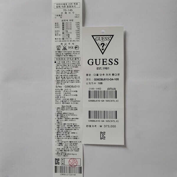 * 혼용율: 겉감 : 폴리에스터 100% 배색1: 폴리에스터 100% 배색2 : 폴리에스터 95% 폴리우레탄 5% 배색3 : 아크릴 100% 안감 : 폴리에스터 100% 충전재1 : 오리솜털 80% 오리깃털 20% 충전재2 : 폴리에스터 100%