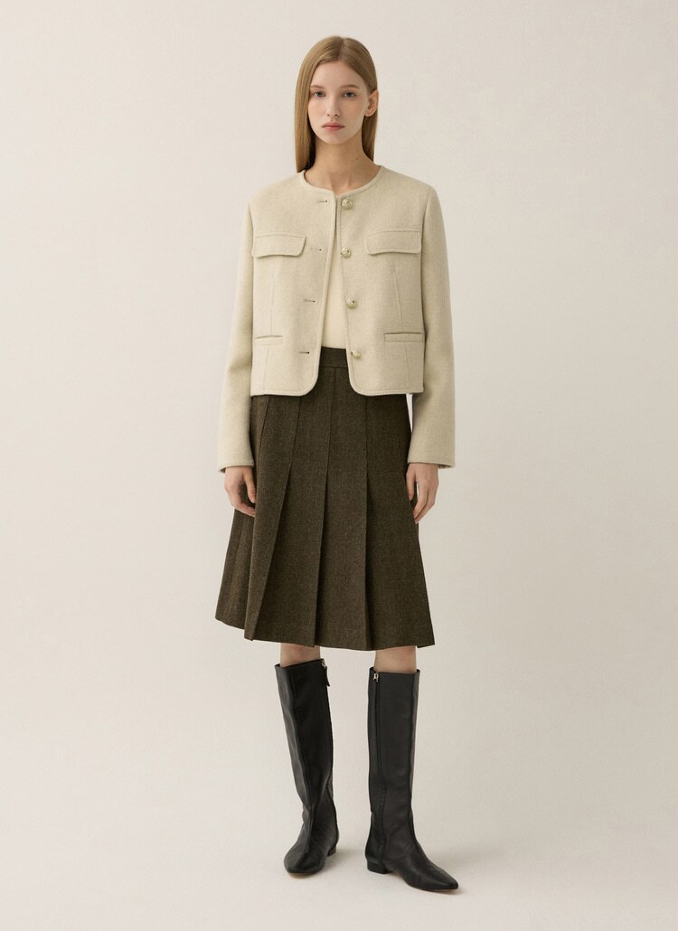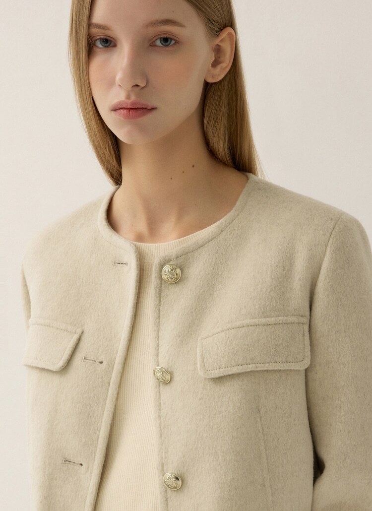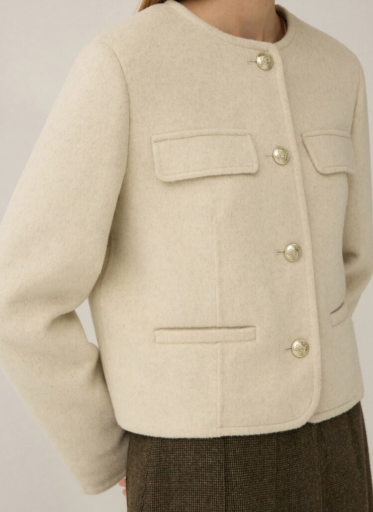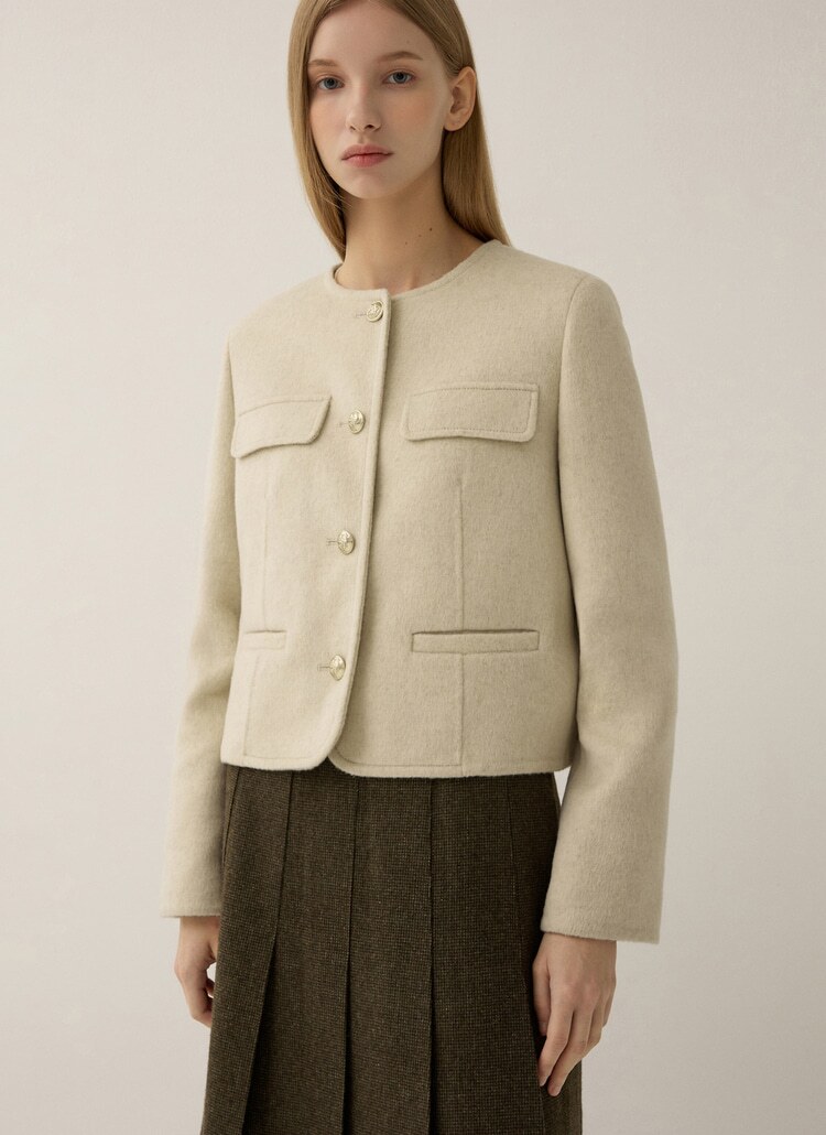 기본 라운드넥 디자인에 포켓 디테일을 주어 포인트를 선사하는 핸드메이드 자켓입니다.