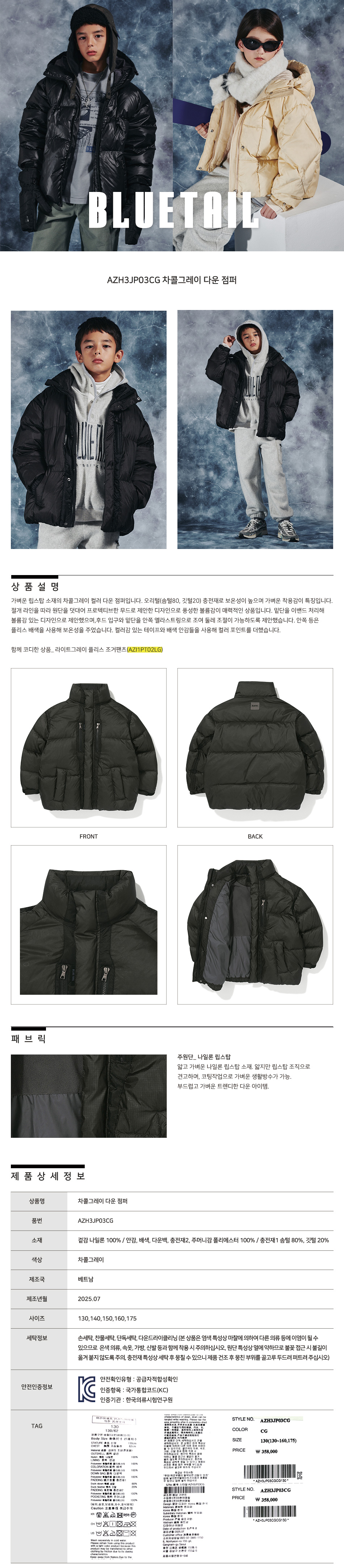 AZH3JP03CG_차콜그레이 다운 점퍼