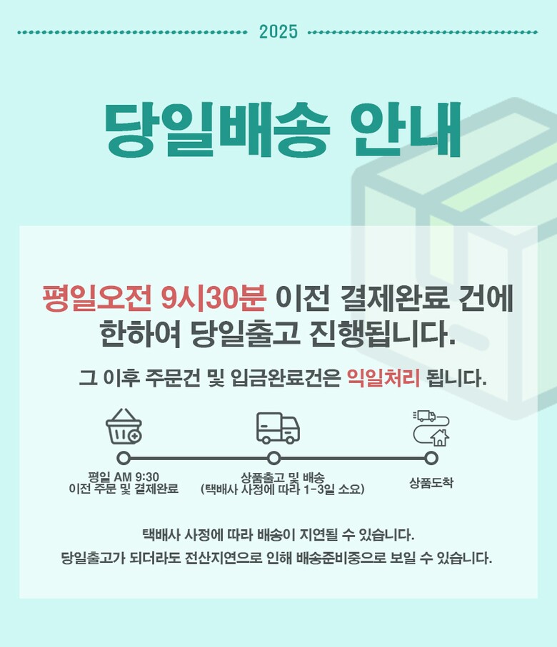 상품불량에 의한 반품, A/S, 품질보증 및 피해보상 등에 관한 사항은 소비자 분쟁해결기준(공정거래위원회 고시) 구매자가 미성년자인 경우에는 상품 구입시 법정대리인이 동의하지 아니하면 미성년자 본인 또는 법정대리인이 구매취소 할 수 있습니다. |