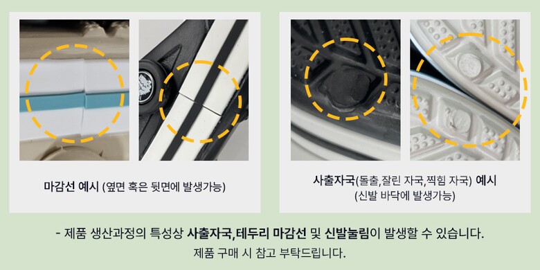 2. 표백제, 세탁기, 건조기, 탈수기는 사용하지 마십시오 3. 직사광선이 드는 곳 (차 안 등), 고온다습한 곳에 신발을 보관하지 마십시오. 4. 물에 장시간 담그지 마시고, 통풍이 양호한 그늘에 완전 건조하십시오. 5. 가죽, 스웨이드, 천은 물기 및 마찰에 의해 변형, 변색, 물빠짐 현상이 나타날 수 있으며, 의복에 이염되는 경우가 있으니 주의하십시오. 6. 미끄럼 방지 기능은 오랜기간 착화시 마모로 인해 기능이 저하될 수 있습니다. |