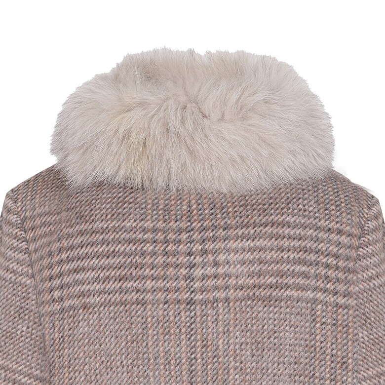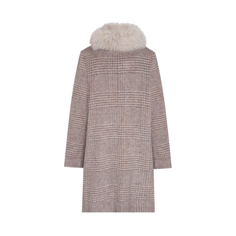 크로커다일 레이디 알파카체크소재 폭스 카라탈부착 코트CLDWCT108