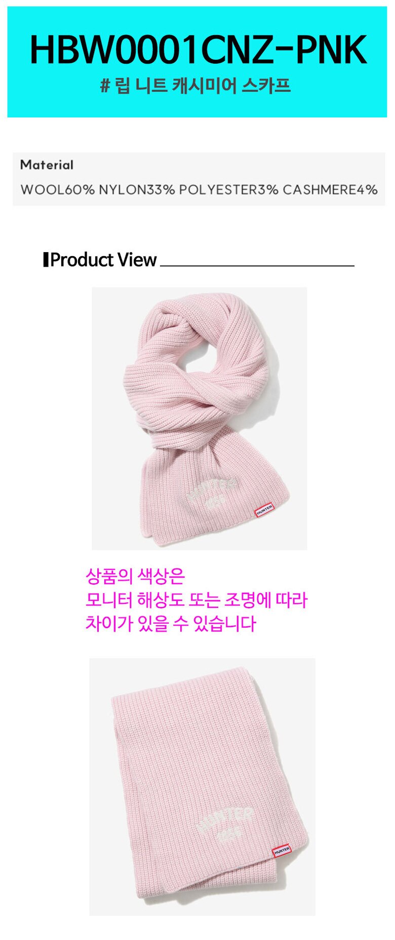 헌터 립 니트 캐시미어 스카프 HBW0001CNZ PNK