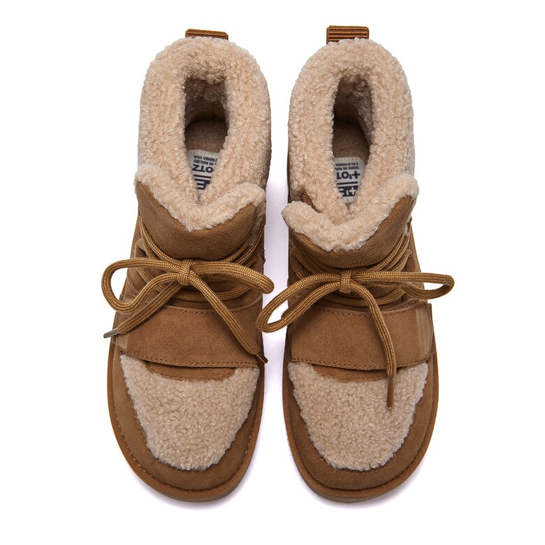 겉감: 천연가죽(소가죽 스웨이드)+페이크퍼 / 안감: 폴리에스테르 100% / 창: EVA+합성고무