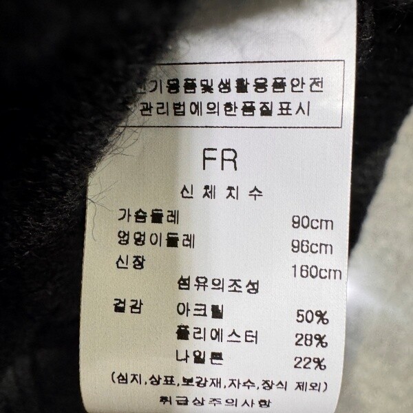 | 1. 제품 소재 (섬유의 조성 또는 혼용률을 백분율로 표시, 기능성인 경우 성적서 또는 허가서) | 아크릴50%,폴리에스터28%,나일론22% |