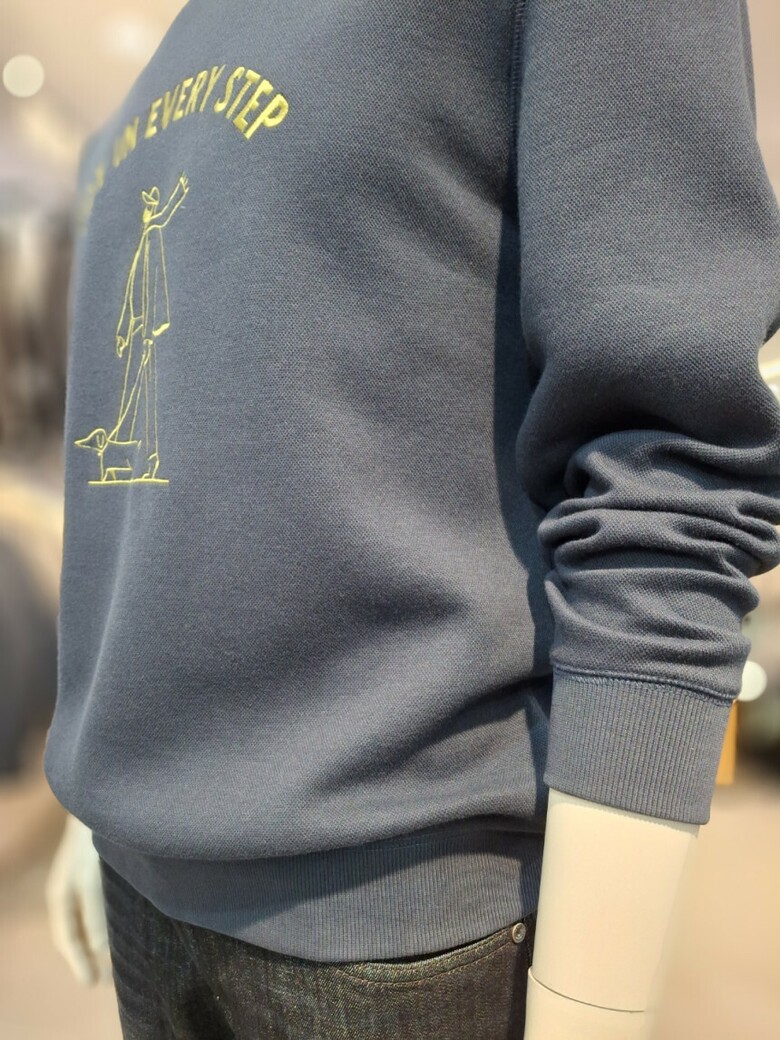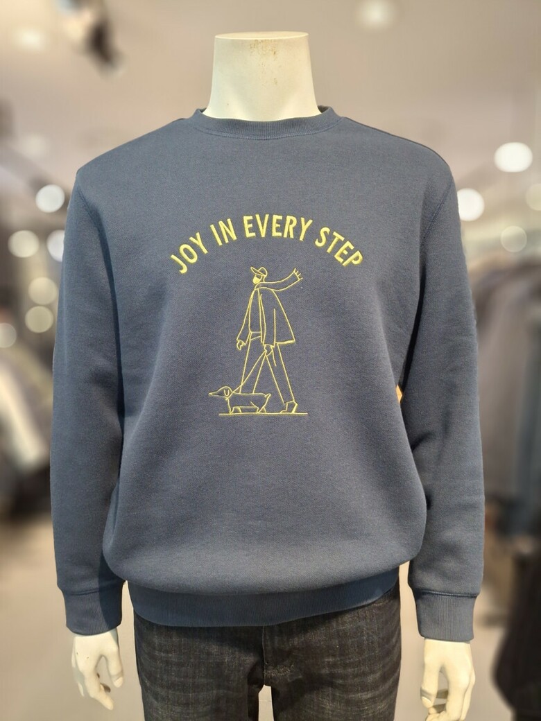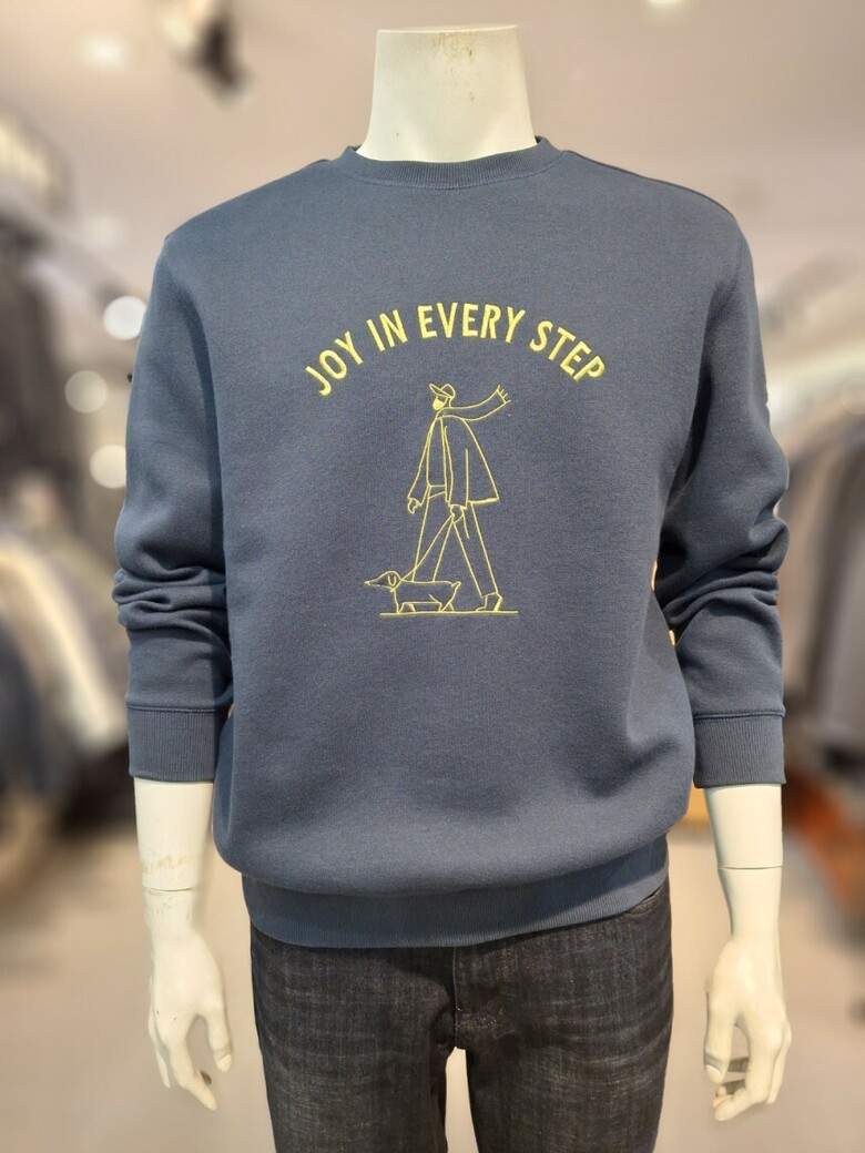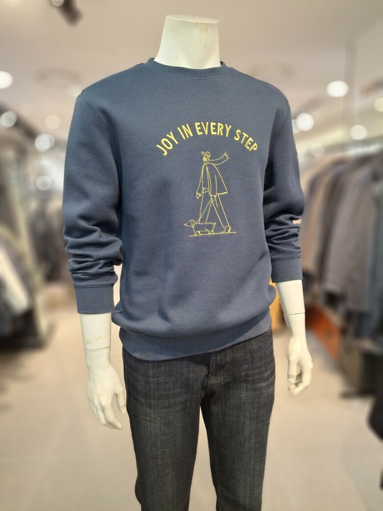면과 폴리혼방의 이중직원단으로 형태보전이 좋은 자수포인트 맨투맨 티